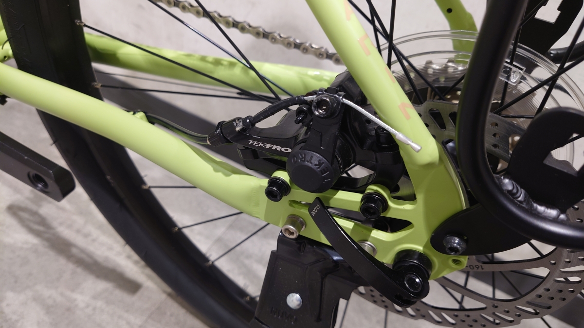 TEKTRO社製キャリパーですが、消耗部分であるブレーキパッドはSHIMANO互換形状なので入手にも困りにくいでしょう。
