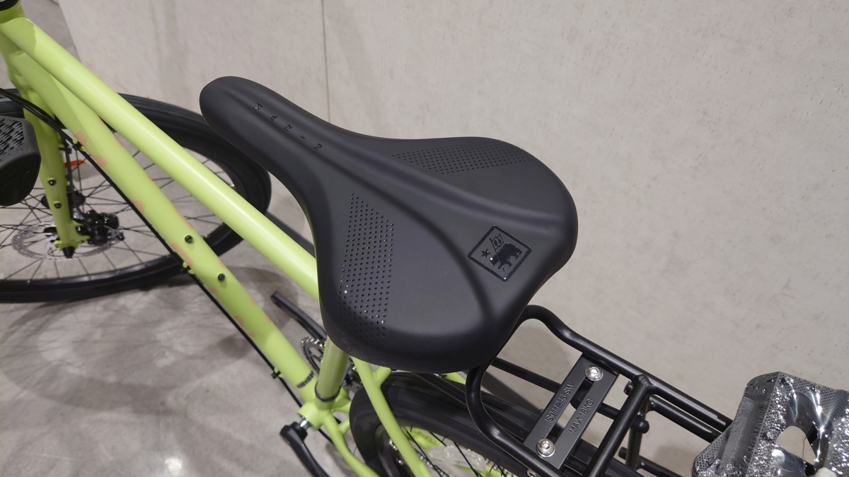 乗車姿勢が起きているとお尻側に体重が乗りやすいので、組み合わされているサドルも面積が大きくクッション性が高い物になっています
