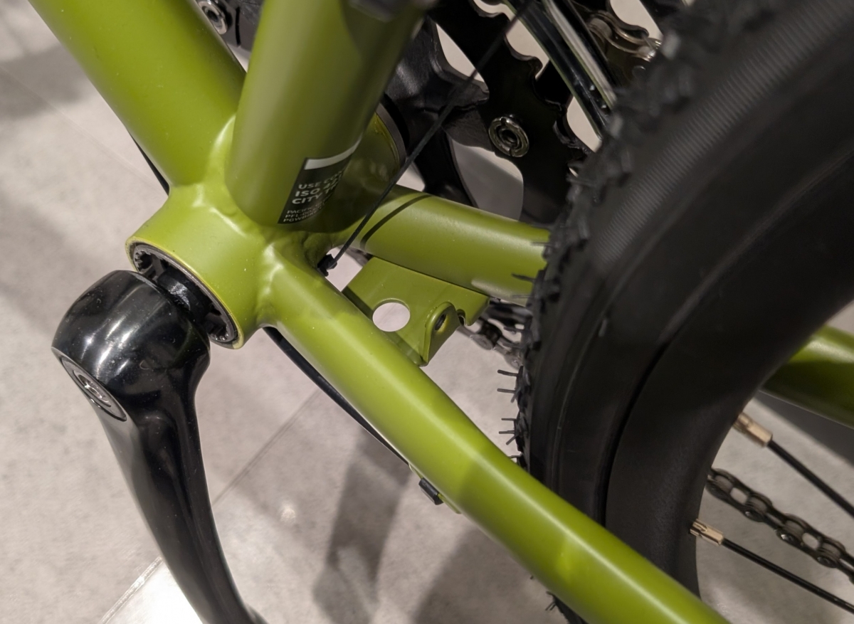 ブレーキはテクトロのワイヤーで引く機械式が採用されています。ロードの引き代タイプなので、ブレーキレバーを替えようとする場合はご注意を!