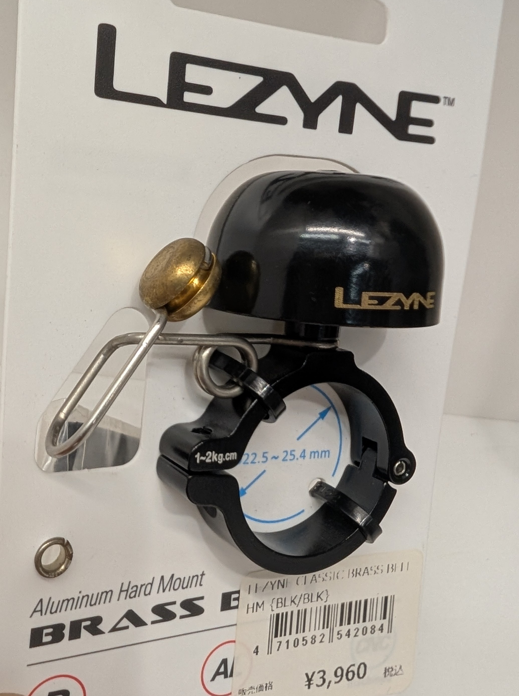 コンパクトなアルミ製のベース部分に真鍮製のドームを採用したクラシカルなデザインのベルです。基本的に鳴らすところはあまりないですが、鳴らした時の音は真鍮らしく余韻を残してとても良く響きます!チィィィィィィィ……ン…みたいな感じです。