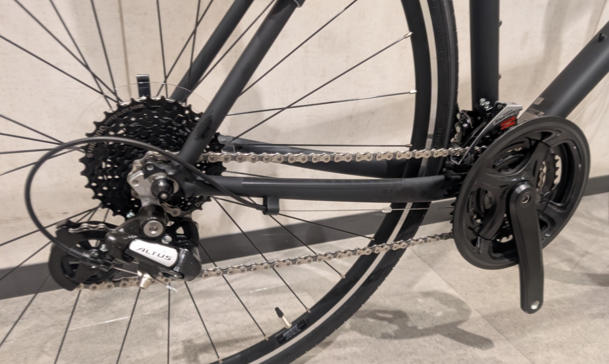 Lサイズはクランクの長さが175mmです!身長のある方用に長いクランクになっています。ギヤはフロント48x38x28T、リヤ11-32Tの8速と言う仕様は変更なしです。タイヤサイズも700x32cと変わりありません。