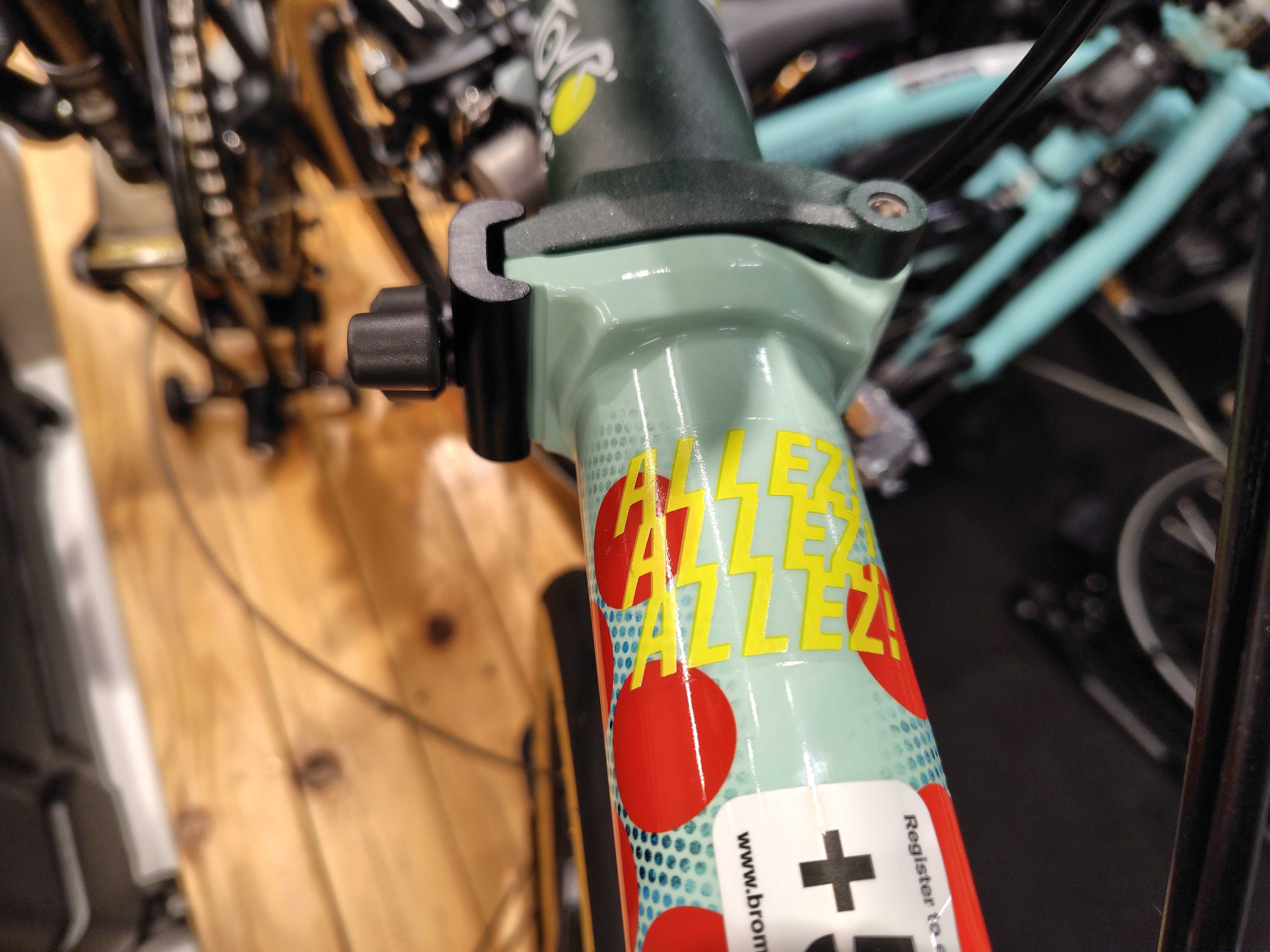 見た目にかなり派手でいつもの落ち着いたBROMPTONとは真逆のでデザインですが、ハマる人はハマるカラーかと。
