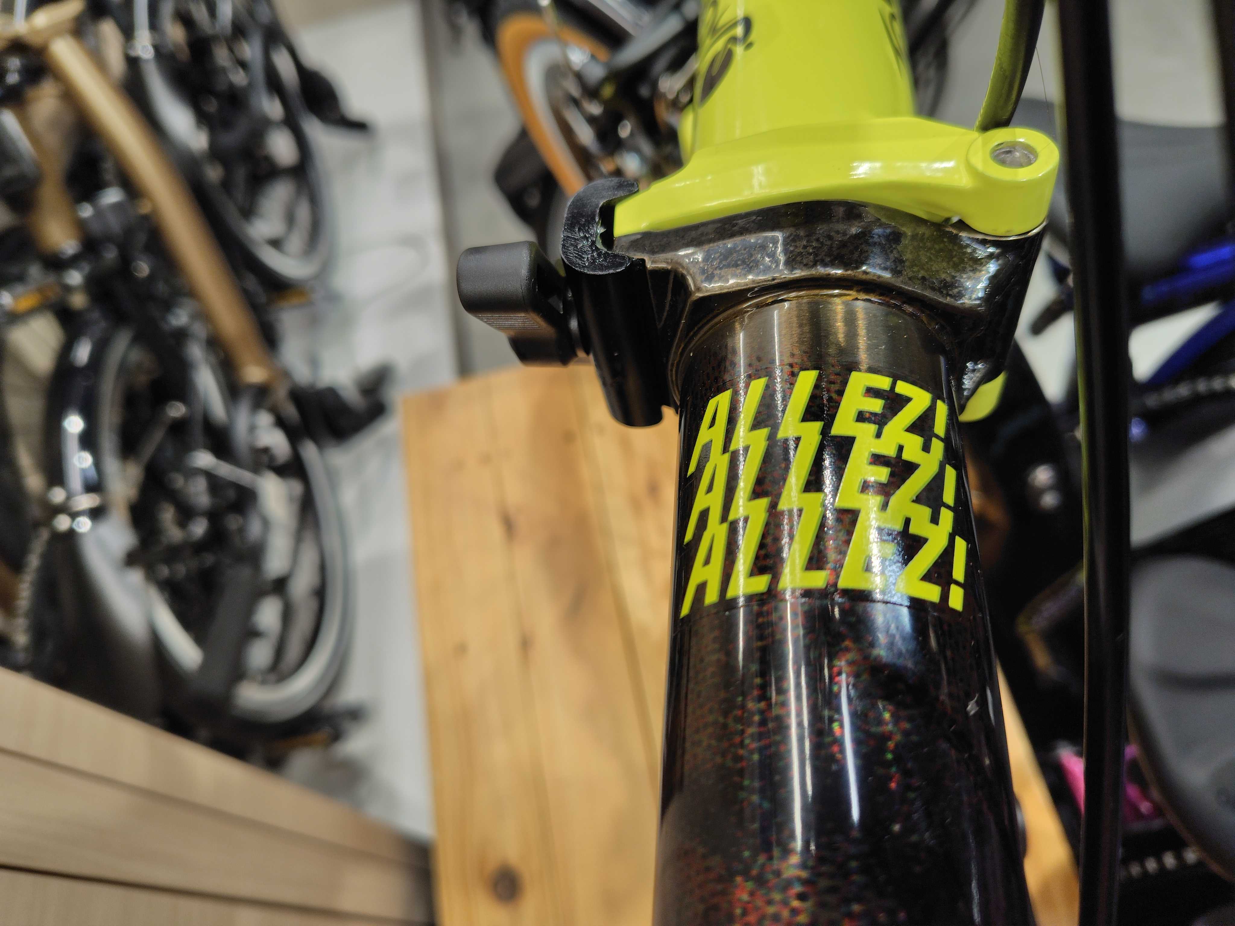 フレームにあるALLEZ!の文字はツール・ド・フランスでの応援では定番の掛け声で「行け!」とか「がんばれ!」のフランス語です。