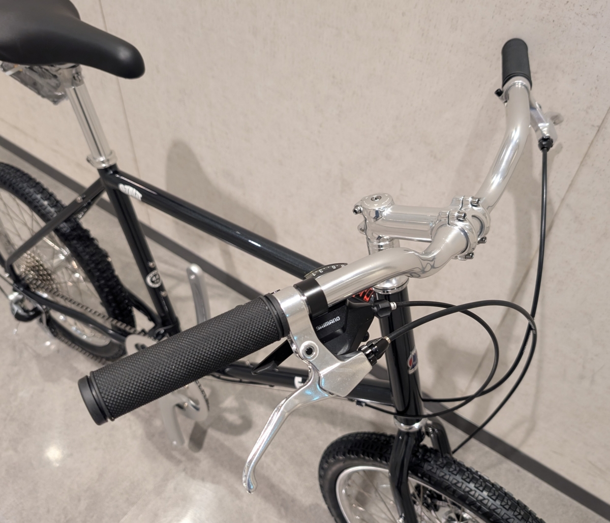 元々のモデルは画像のようにハンドルがかなり上に上がっており、ゆったり乗れるモデルになっています。