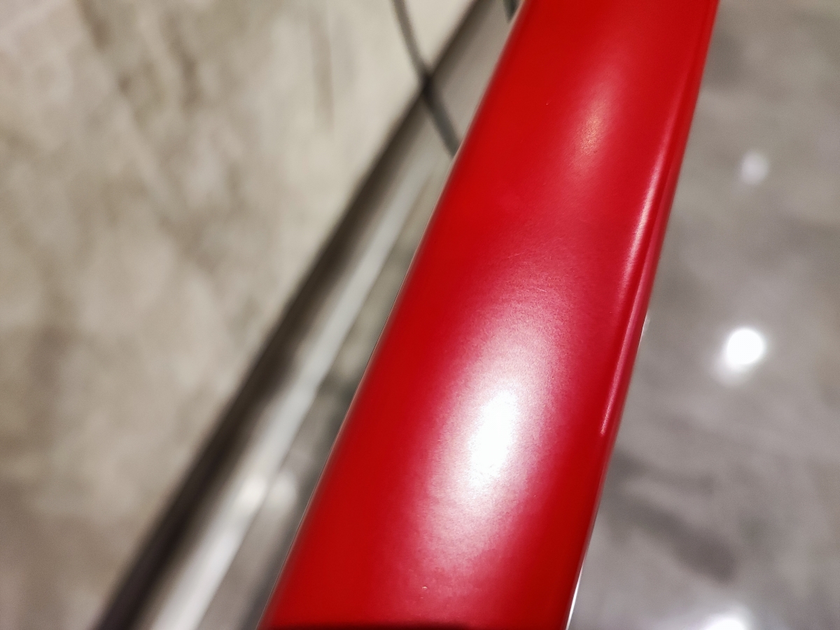 セミマットの原色に近いレッドですね。わりとギュッとした手触りで、光の反射を抑えた仕上がりとなっています。