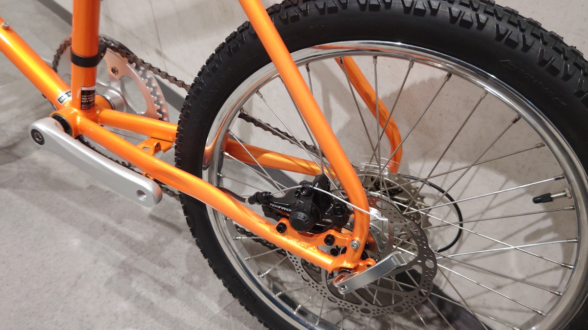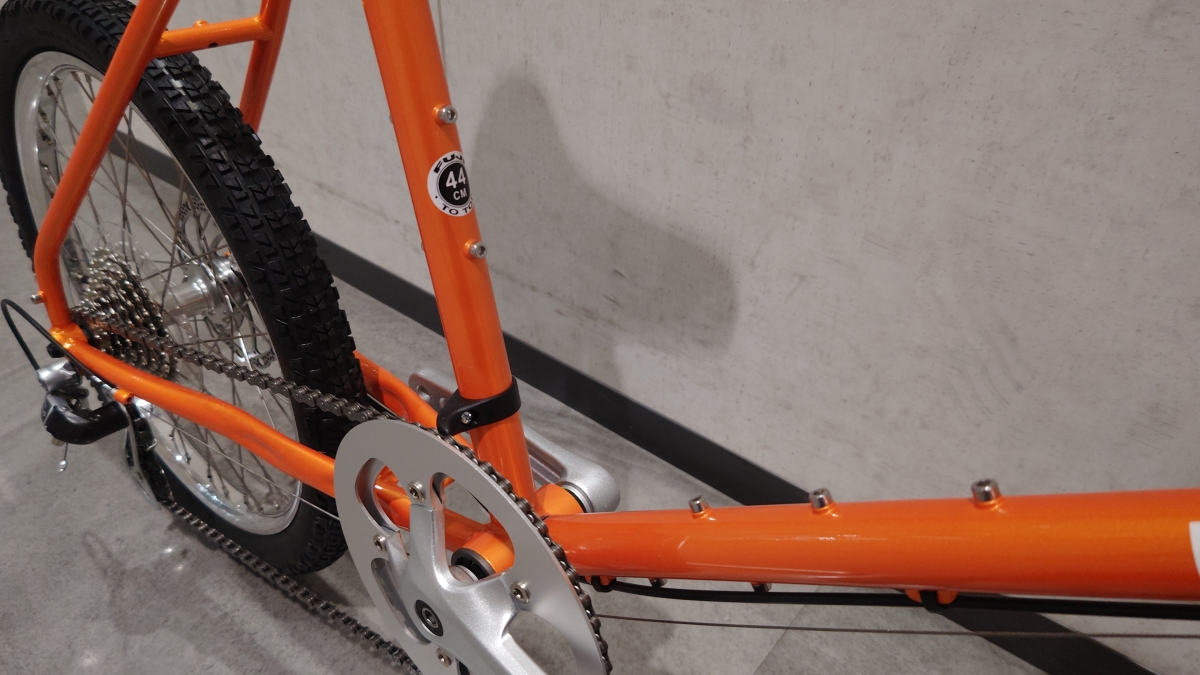 ここ最近のトレンドであるディスクブレーキ搭載のミニベロが遂に登場ということで当時話題になった「STAUT」。豊富なダボ穴のおかげで積載量を増やすことができるほか、センタースタンド台座も用意されているので、ダブルレッグスタンドを付けて安定感を持たせることも可能になっています。