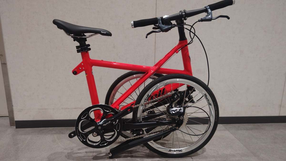 ミニベロではスラントデザインと名付けられた特徴的なフレーム形状で一見してTyrellとわかるデザインをしています。