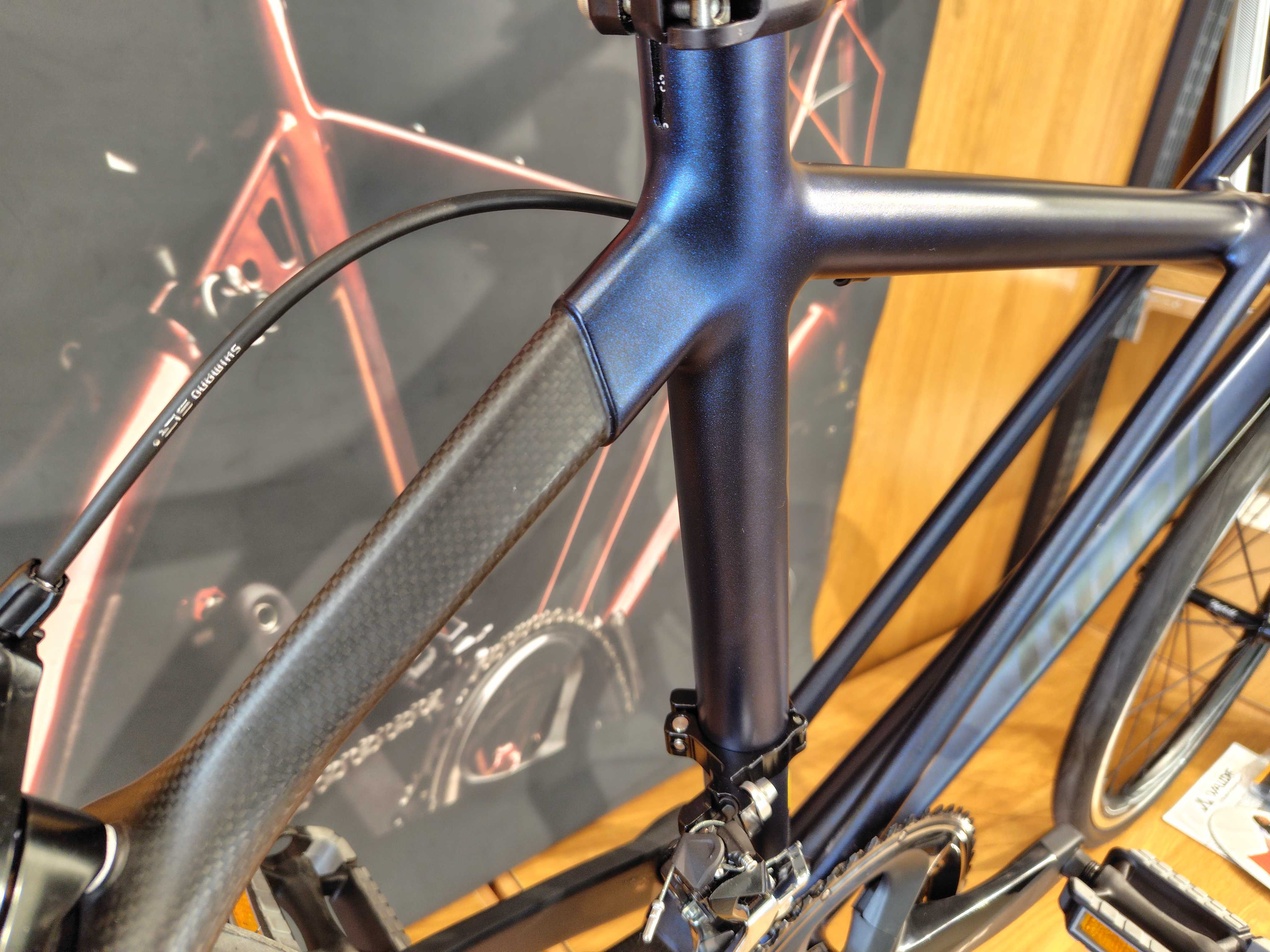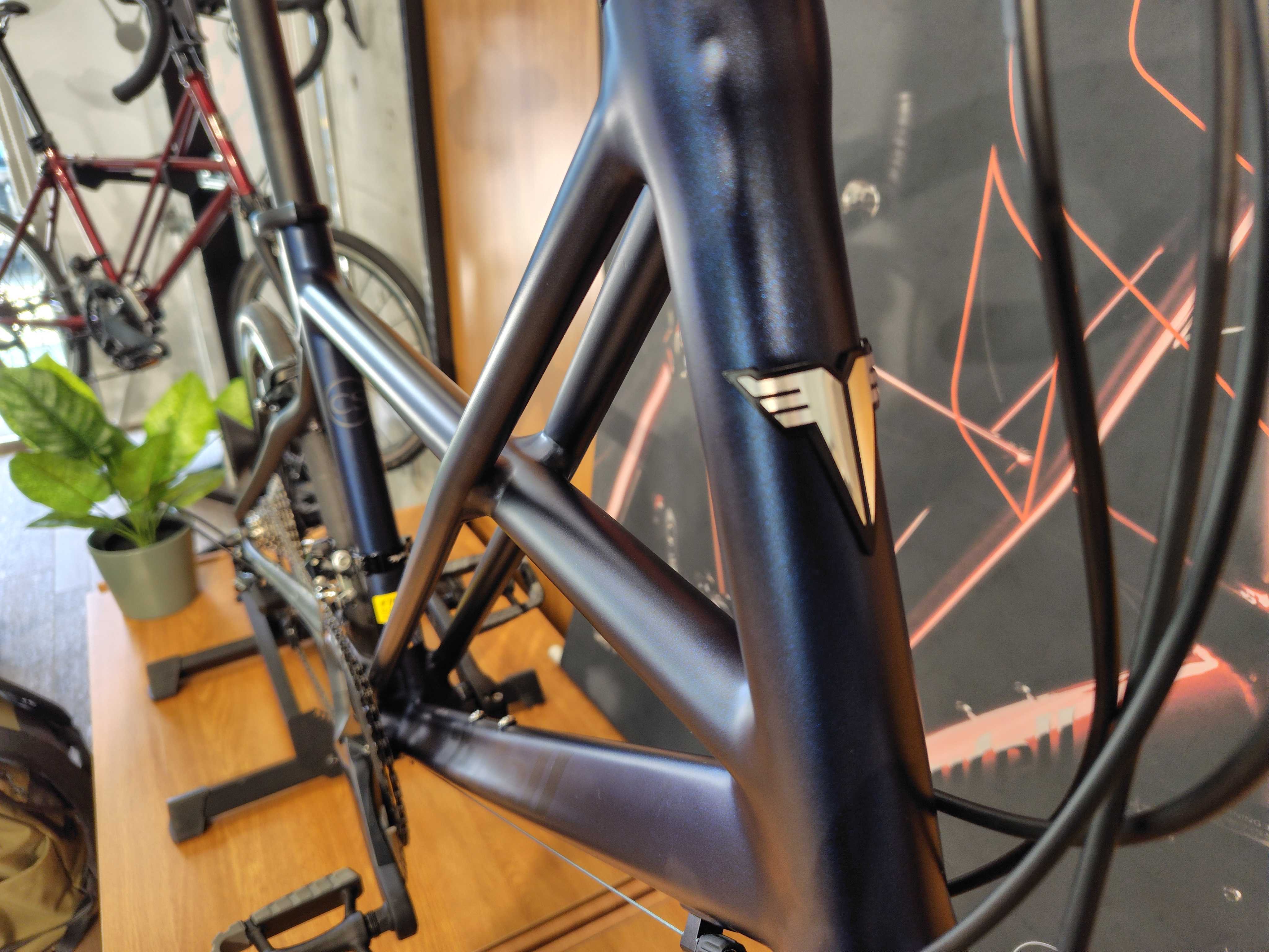 リアのシートステーがブラックカラー、フロントフォークはカーボン柄となっているカラーリングです。