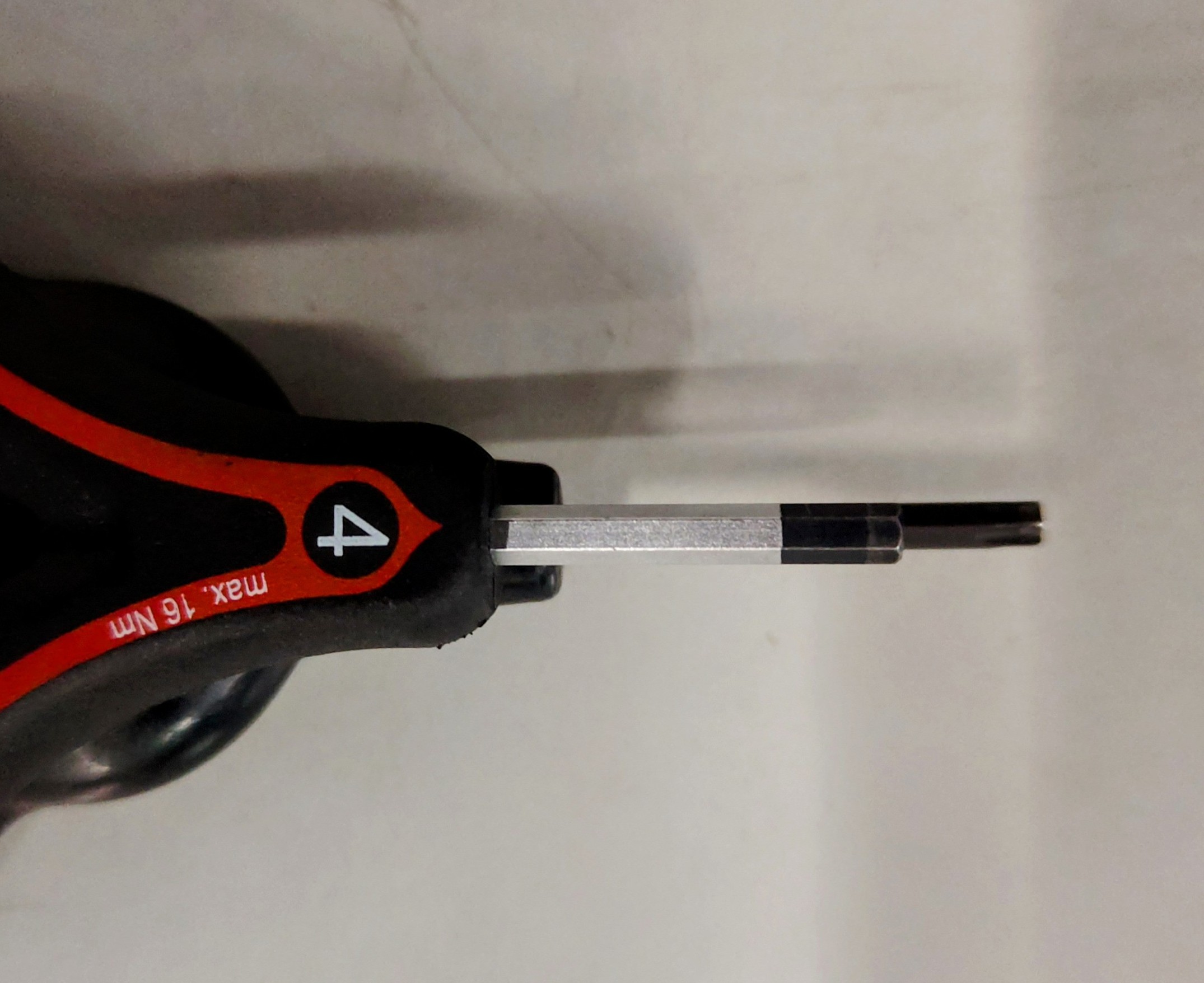 4・5・6ミリそれぞれのレンチ付近に書かれているMAX Nmの数値。4mmで16Nmまで耐えられるという事だと思うんですが、果たして人間の手と4mmで固定されているネジがそこまで持ってくれるのか…