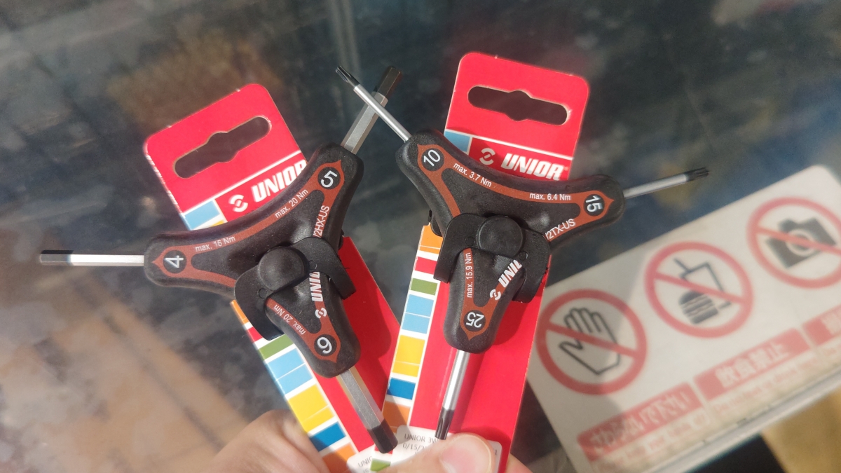 今まで使っていたのがパークツールのÝ字レンチ。一本で三役こなせる工具としてかなりオススメしたい商品の一つ。ハンドル周りの固定の際はレンチを持ち換えることなく作業が出来るので、かなーり作業が楽になります。