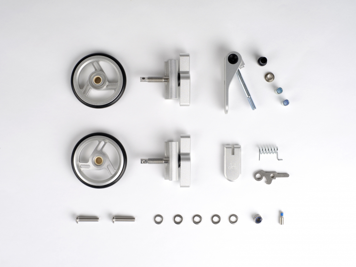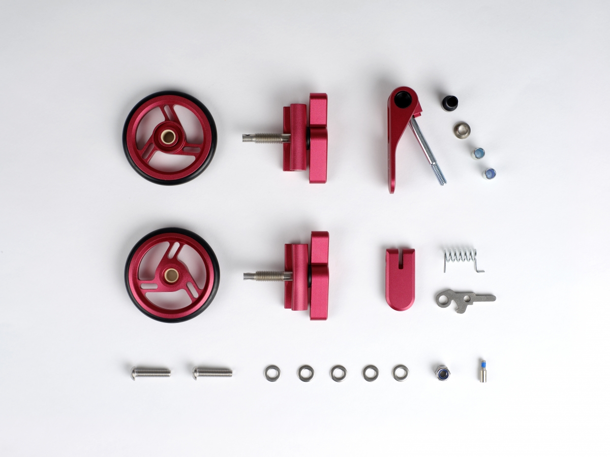 通常はローラー、ヒンジ共にオールブラックカラーですが今回プレゼントするカラータッチポイントに取り換えればグッとカスタムバイクらしい装いになります!