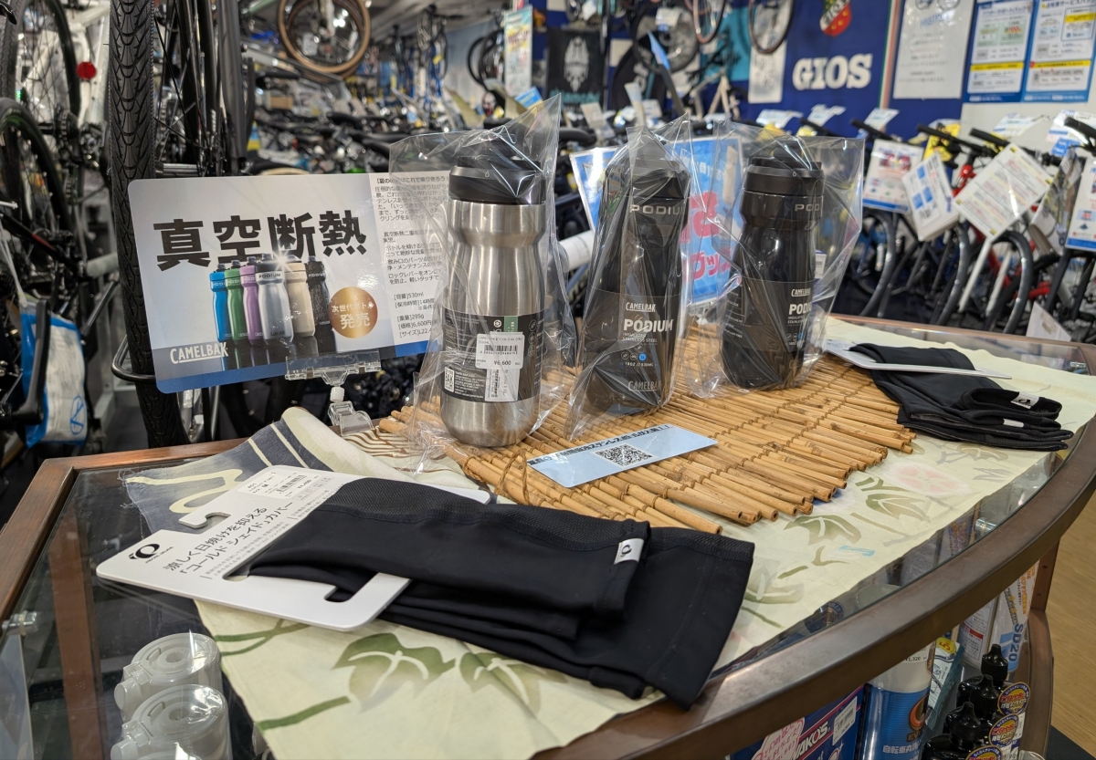 新宿クロスバイク館でも小さいスペースですが暑さ対策コーナー設置しました!