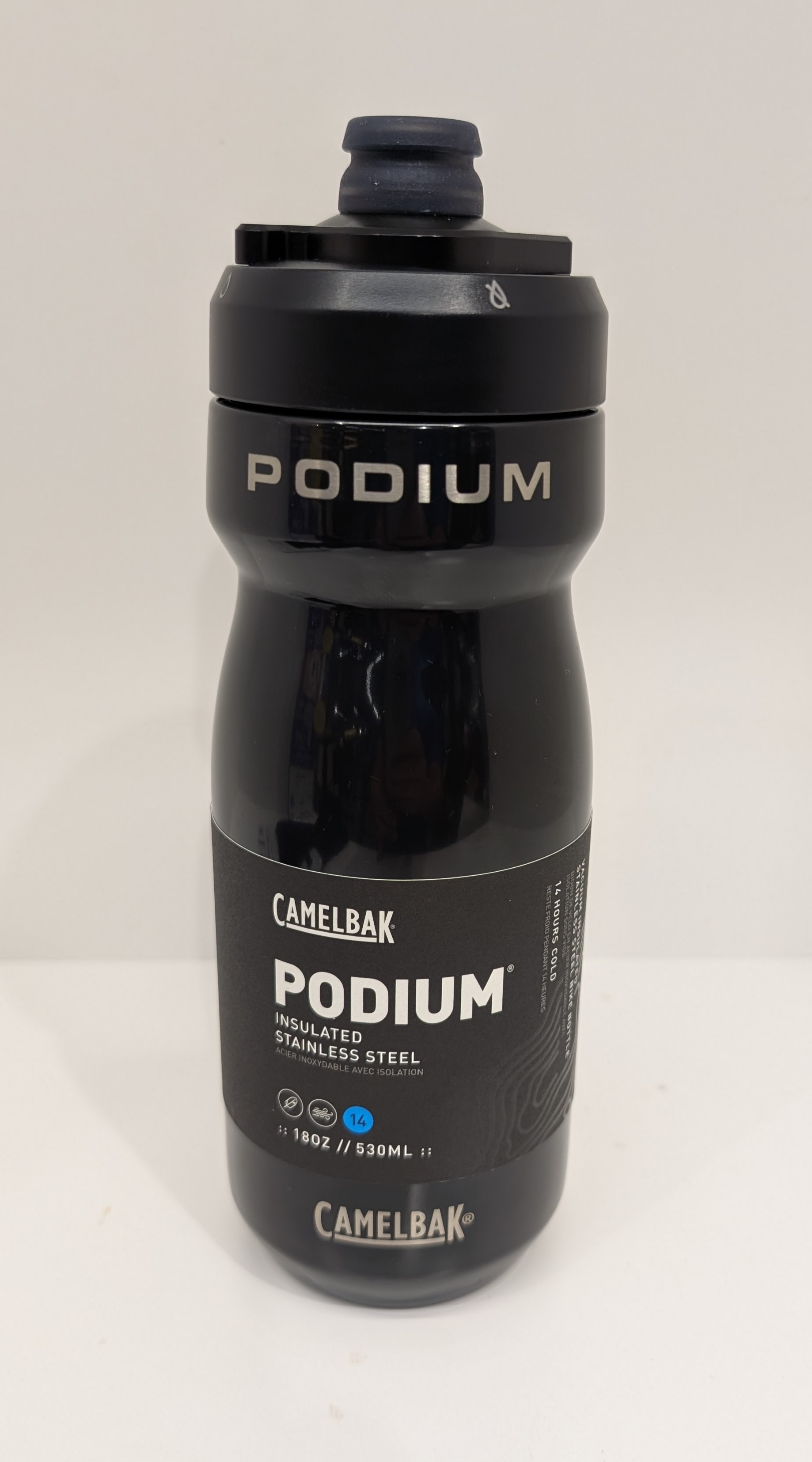 こちらはCAMELBAKのステンレス保冷ボトル530mlタイプになります。もうひとつの650mlタイプは\7,150(税込)です。保冷時間はどちらも10時間を超えますが、夏場に10時間ボトルが空にならない事はないので「保冷力に優れている!」で良いと思います。保冷ボトルは途中に補給したものを冷えたまま保持できるのが超利点ですね。ロングライドでも近場のサイクリング等でも、暑い時は冷たい飲み物で身体の内から冷やす!と言うのはけっこう大事です。カラー展開は6色、お好きな色をお選びください!