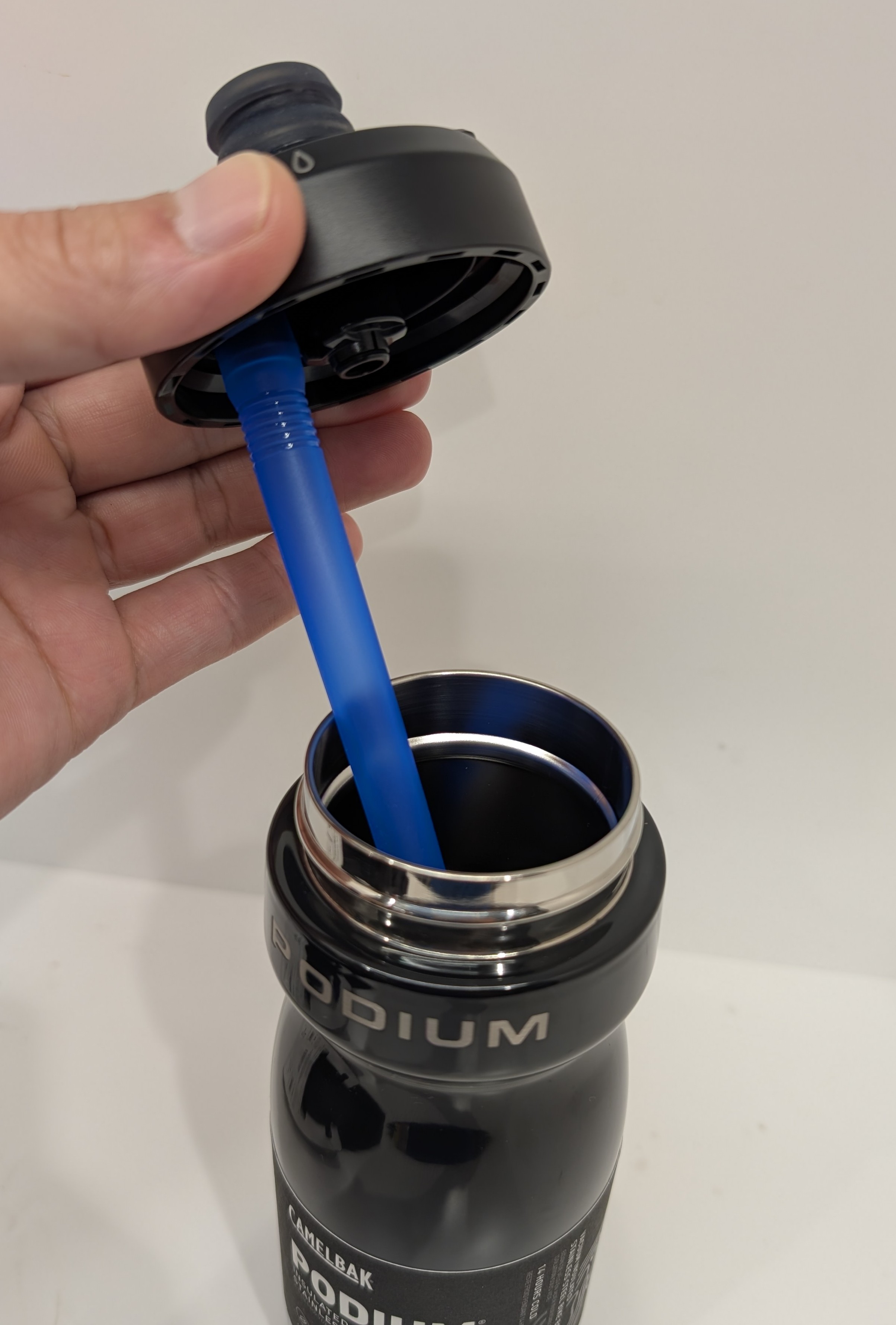 キャップ部分にロック機能があります。画像の位置でロックされ、飲み口の下の部分を反時計回りにひねるとロック解除されます。