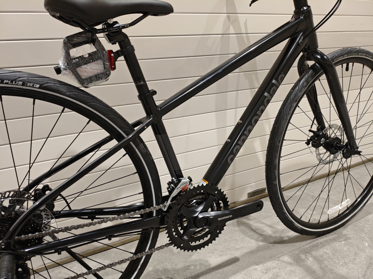 楽な姿勢で乗れて街乗り向き、小さいサイズの展開もあるので背の伸びてきたお子様のクロスバイクデビューにも人気のCANNONDALE QUICK LTD。基本的には派手めのカラーが多いのですが、ブラックのラインナップがあります。が、ほぼ品切れ状態でしたがXSサイズがまだありました!当店にも1台入荷ですよ!