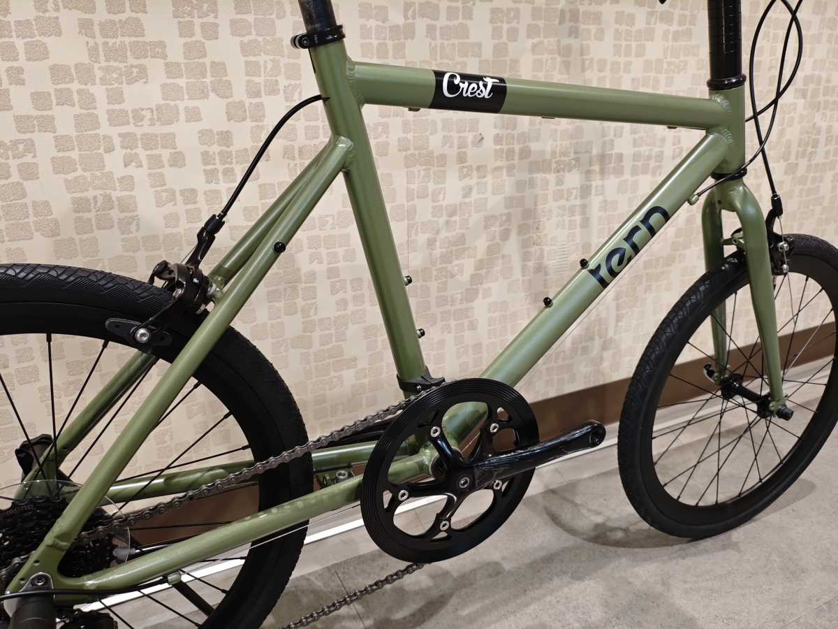 現在は大きくライズアップしたハンドルにVブレーキを採用し、街乗り向き!という感じの雰囲気なTERN CREST。じつは当店にはモデルチェンジ前のフラットバーロードみたいな雰囲気だった旧CRESTがまだ1台だけ在庫があります!