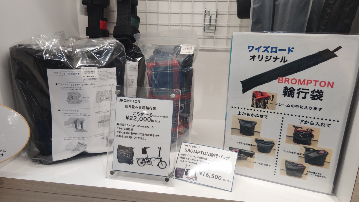 ワイズロードオリジナルのBROMPTON用輪行バッグ。未使用時はフレーム内に収納が出来、使い方も上から被せたり下から潜らせる形で使うだけのシンプルなつくり。輪行袋としてだけじゃなく、自宅での収納時にも便利なアイテムです。