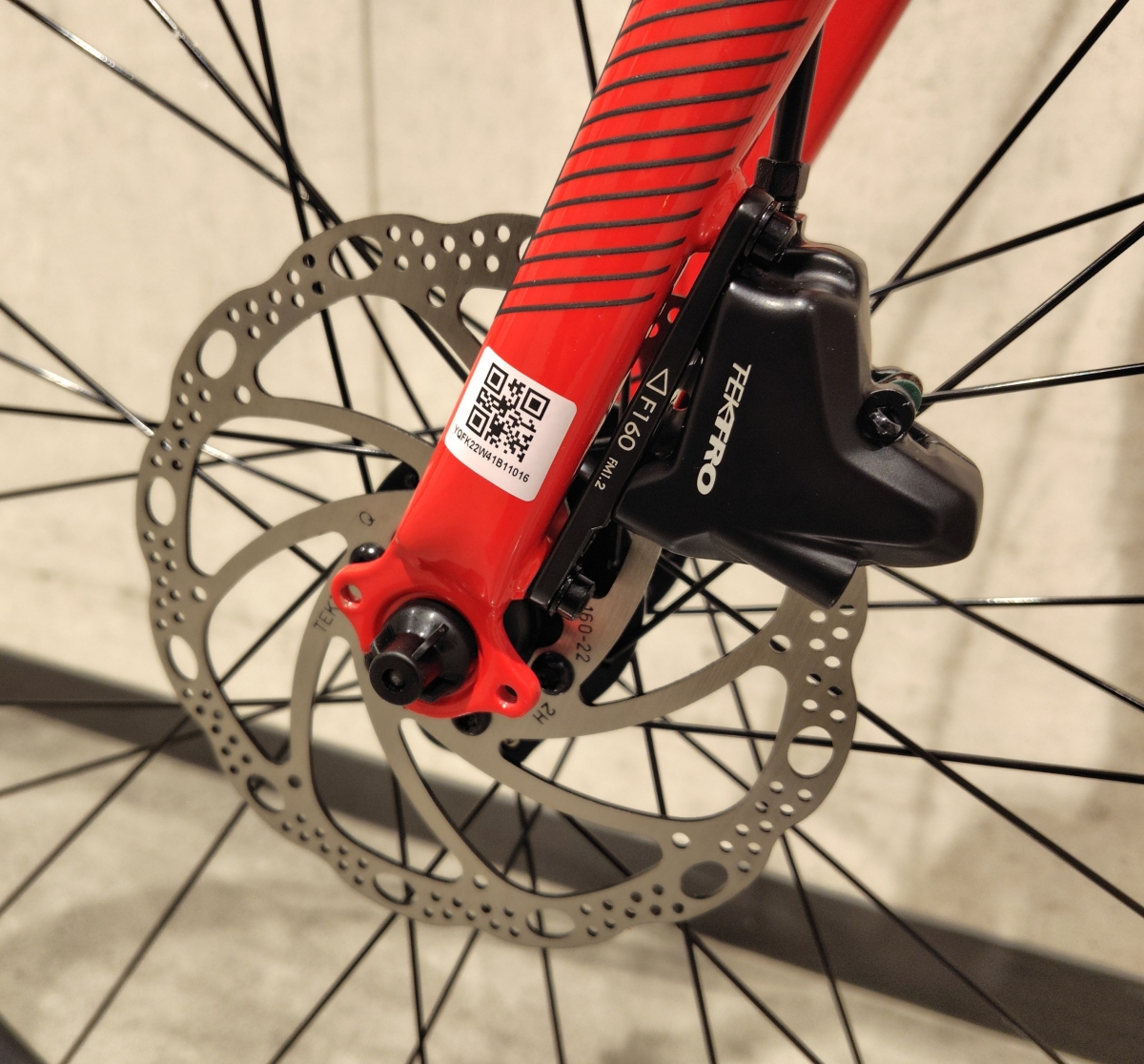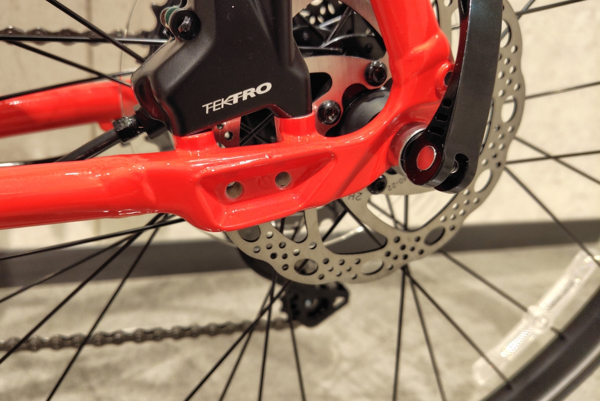 レバー側と同様テクトロの油圧式フラットマウントディスクブレーキが採用されています。制動力が天候に左右されづらい安定した油圧ディスクブレーキはレバーを引いた感じも軽いのでとても有用ですね。