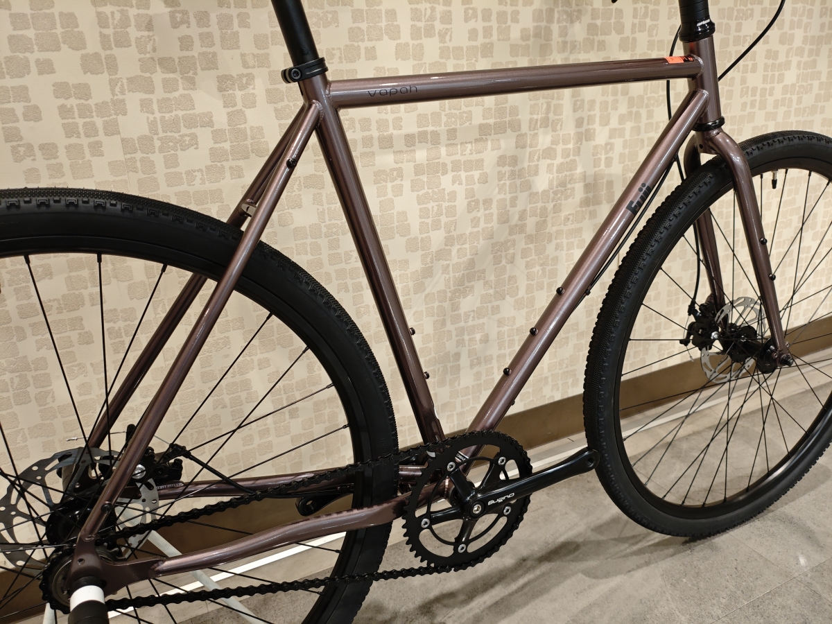 太めタイヤ・ディスクブレーキ・前後ラック取付可能なシングルスピードという個性的ながら街乗りにも便利とお探しの方が多いFUJI VAPAH。センタースタンドの取付が可能な点も好評ですね。
