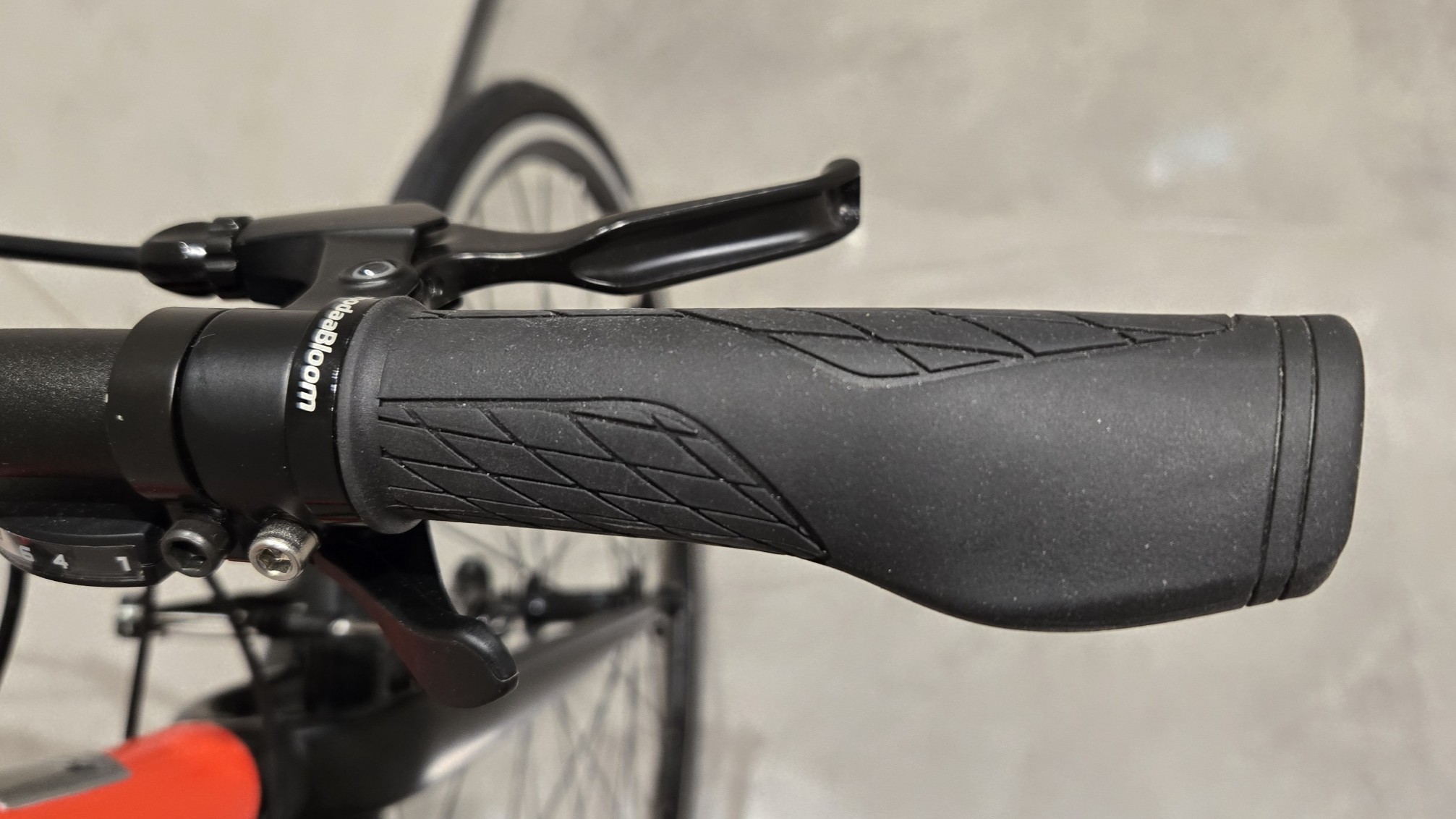 手のひらの自然なカーブに合わせた形状により長時間握り続けても疲労を軽減します。通勤で往復1時間乗っても、手のしびれや痛みを感じにくくなっています。