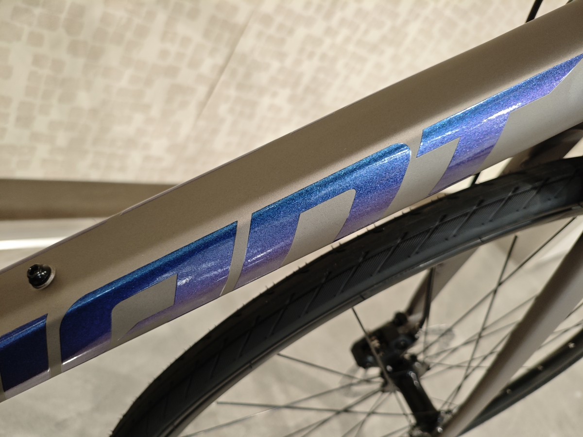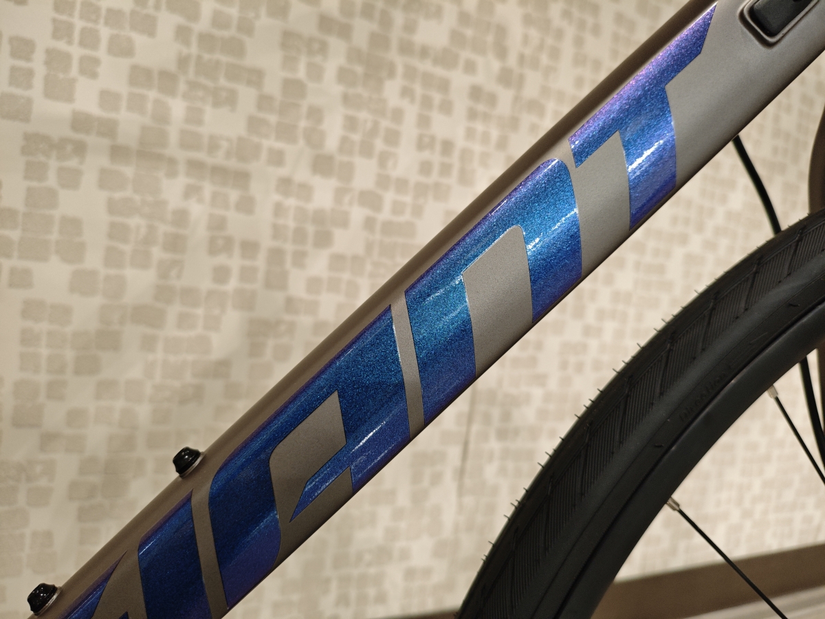 寄りだとこんな感じ。もちろんアルミフレームですが、とてもリアルなチタン感がありますね。
