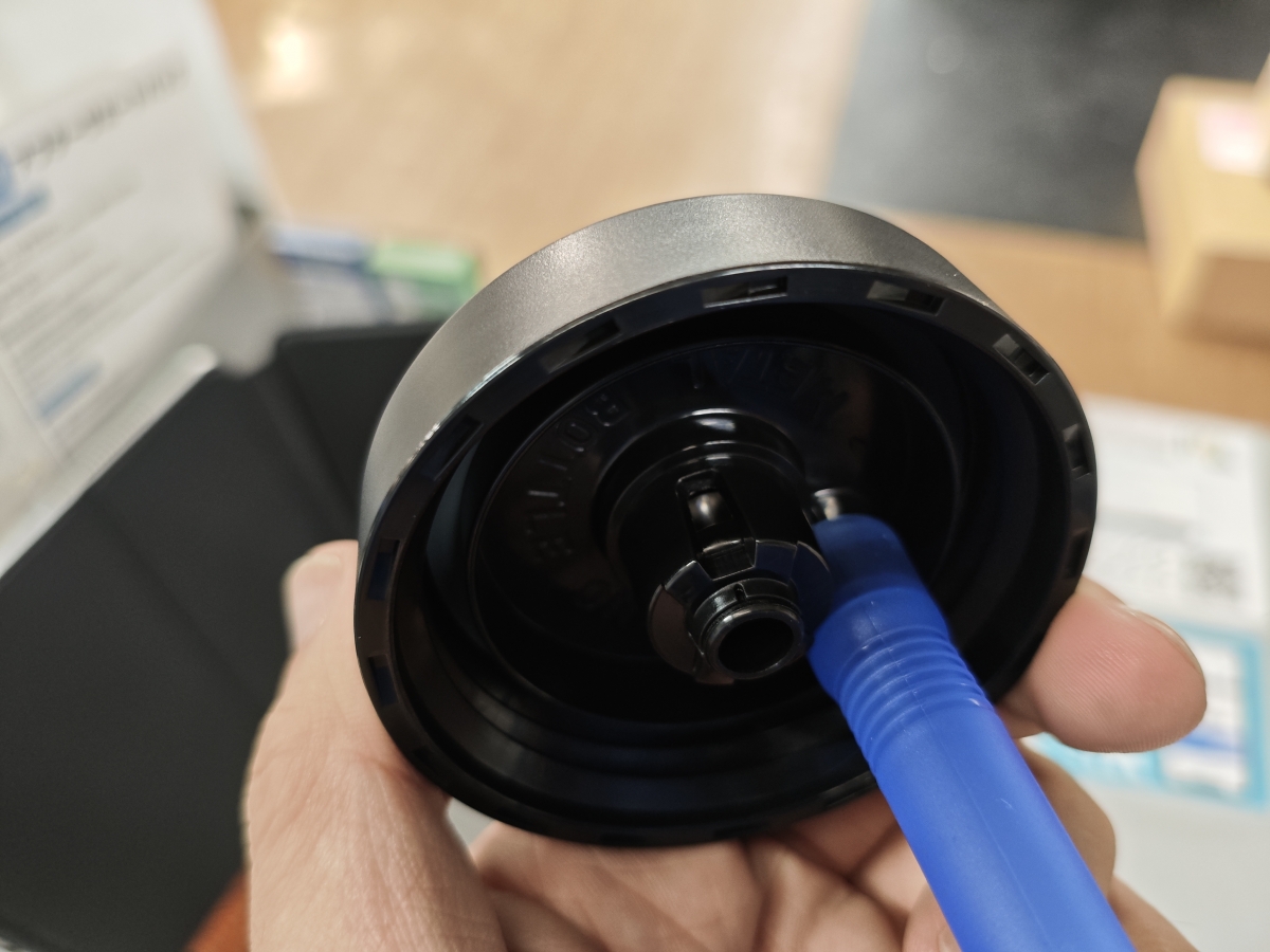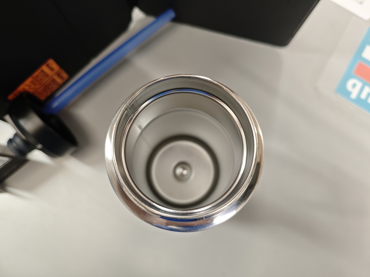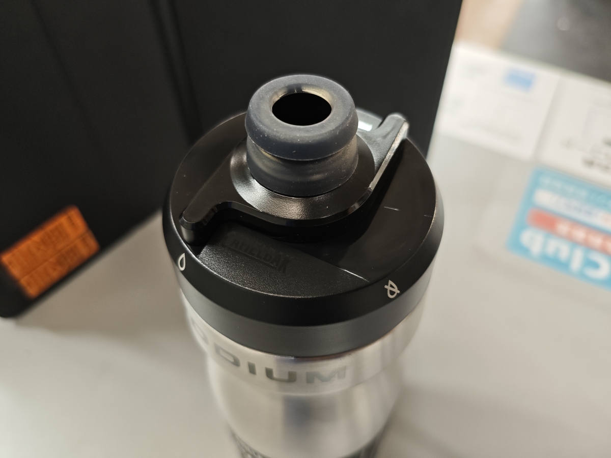 通常のPODIUMシリーズはベコッと凹ませて水を出しますが、これはボディが真空断熱のステンレス。さすがに凹ませられないですが、それを考慮した構造になっているのでご安心を!