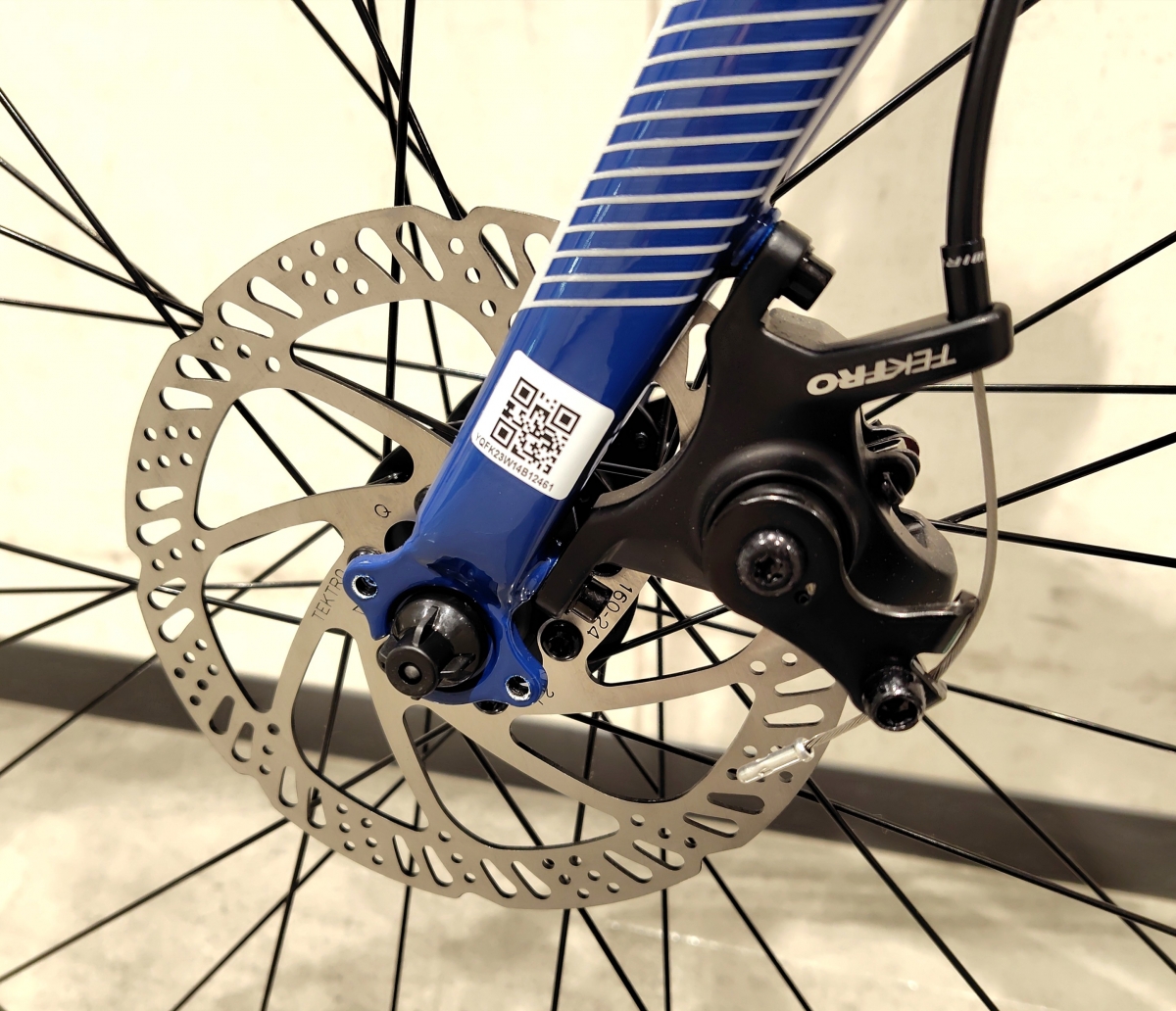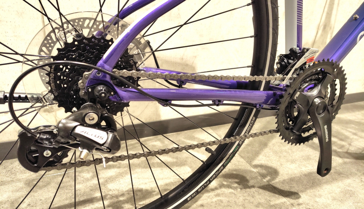 ブレーキキャリパーはテクトロのワイヤーで引くメカニカルディスクブレーキが採用されています。レバーの引きの軽さは油圧式に優位性がありますが、雨天時などではリムタイプのブレーキより効きは良いですのでご安心を。