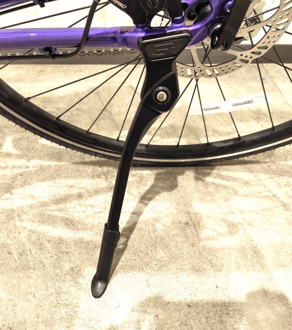 QUICK LTDは専用キックスタンドが標準装備されています。角度調整もあり、工具不要で簡単に調整ができます。