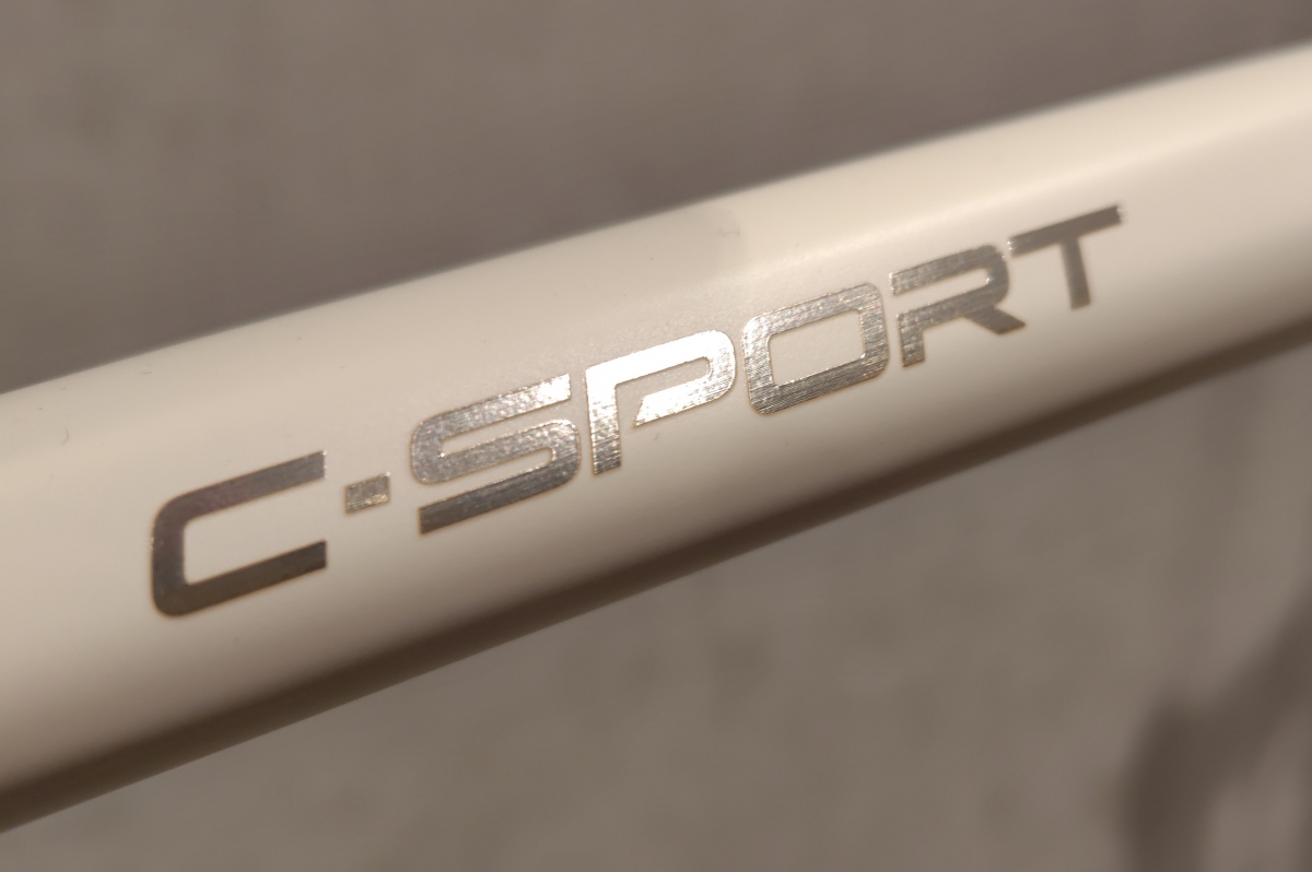 ご紹介のフレームは55サイズですが、ディスクブレーキを採用しているC-SPORT2 DISC、C-SPORT CROSS DISCの43サイズは「ステップスルー仕様」、トップチューブの溶接位置が低くなっております。欧州メーカーはトップチューブの溶接位置が高めなので、43サイズなら小柄な方にも乗りやすいバイクとなっています。