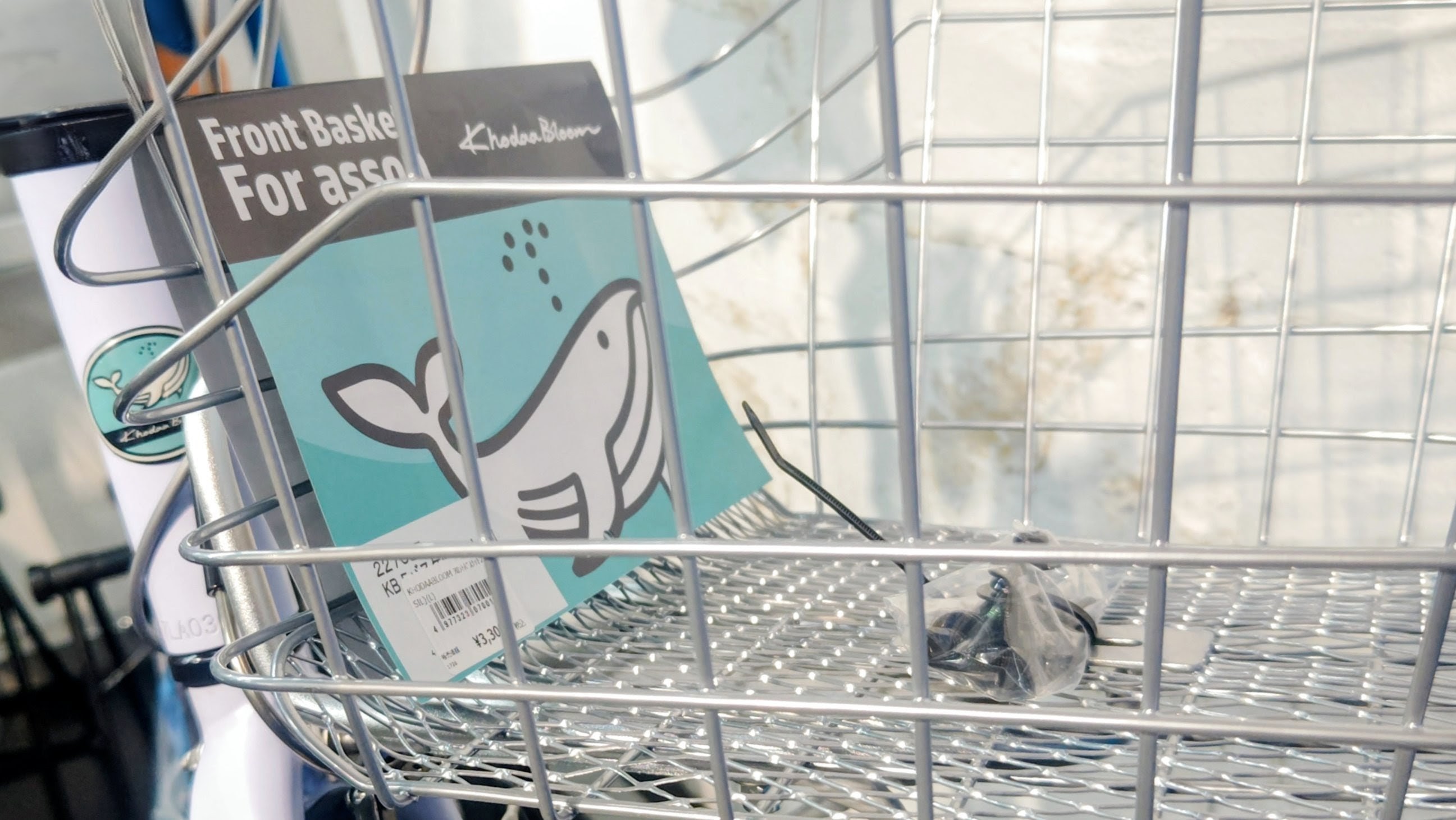 ASSONシリーズにピッタリな前カゴも展示中です。実車に併せてみて、実際に付けた時の見た目やサイズ感を確認出来るので、ぜひ一緒にどうぞ!