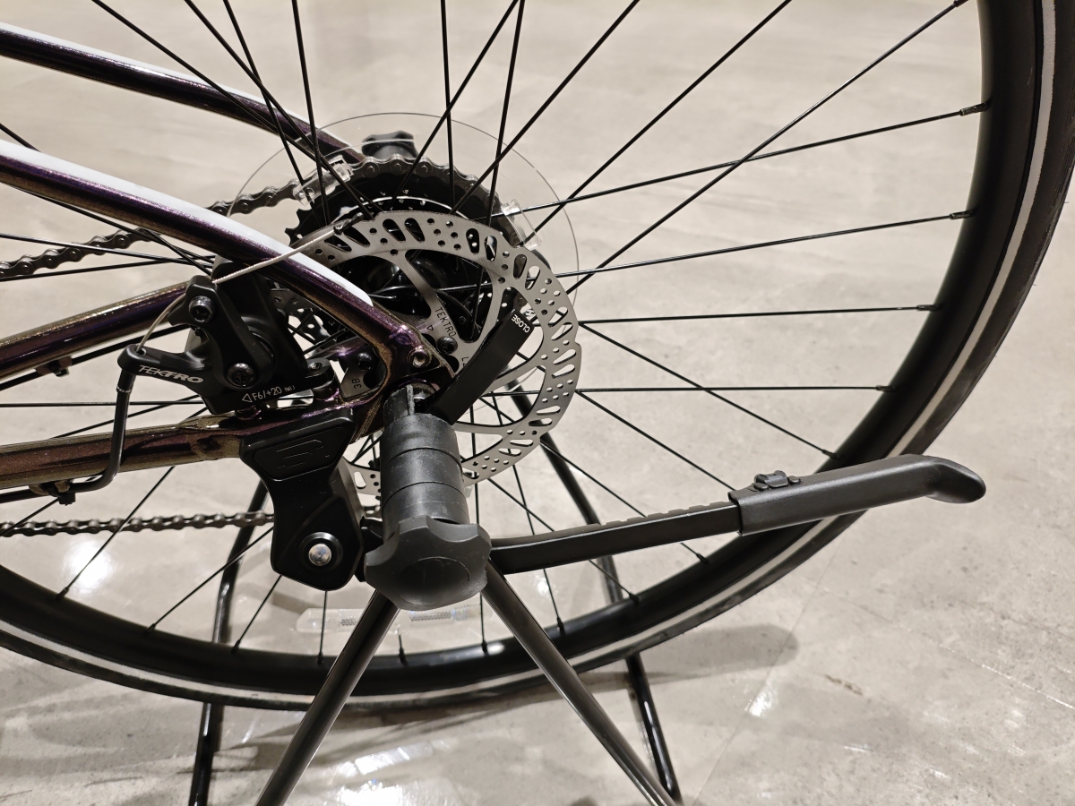 街乗りに嬉しいキックスタンド標準装備。他のQUICKシリーズはスピードセンサーが付属しますが、こっちのほうがいいという方はわりと多いですね。
