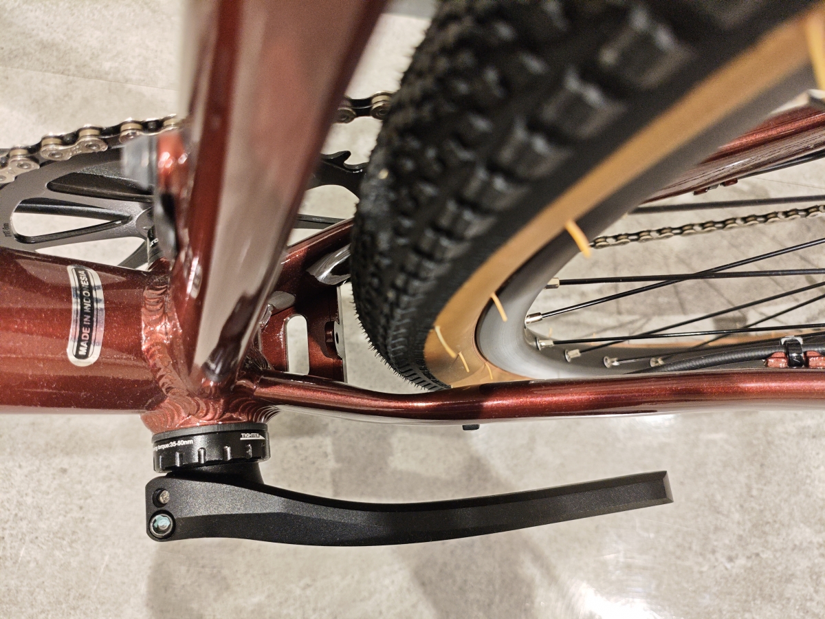 逆にチェーンステーは縦に幅広く、スタンドの取付には向きません。