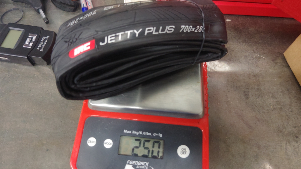 一本で250g!なんと半分以下の重量です。量り方に差異があるので正確さは欠きますが、500g程のダイエットができると考えると大きい差ですね。しかもグリップが良くなったり、転がり抵抗が少なくなったりといったメリットも付いてきます。