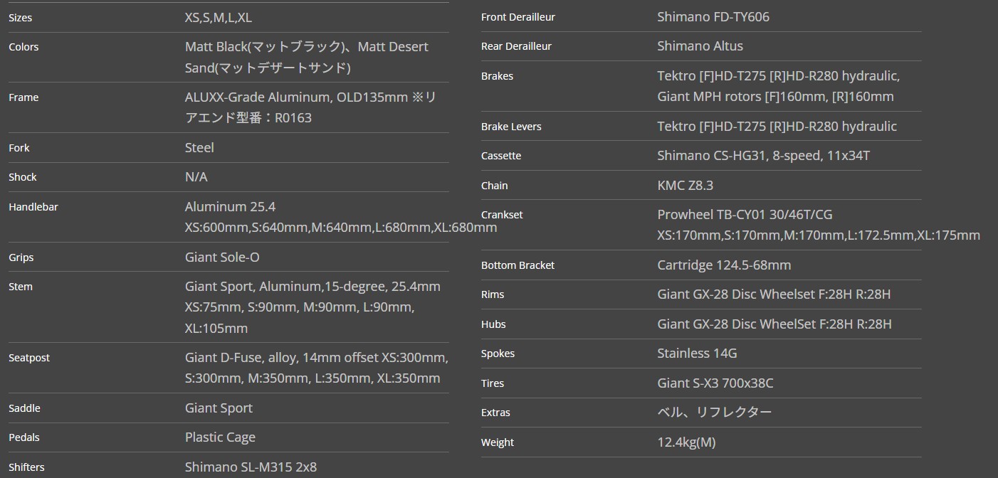 現在GIANTから発売されているESCAPEシリーズは以下のラインナップがあります。
