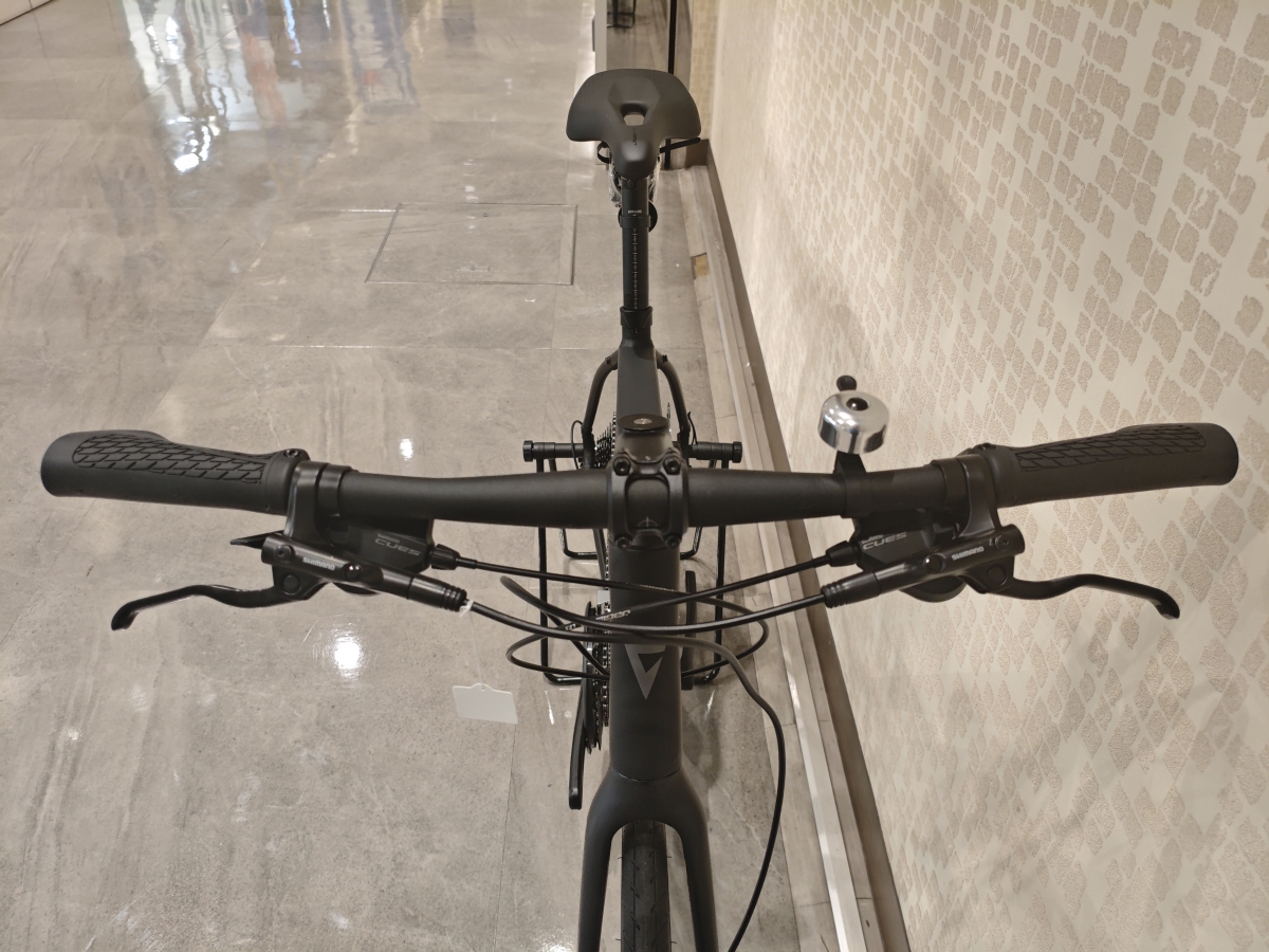 ハンドルはシンプルなフラットバーですが、比較的剛性の高いオーバーサイズクランプ経のものが採用されています。フレーム自体の剛性も高めに設計されているので、こういう細かい部分も考慮されていますね。