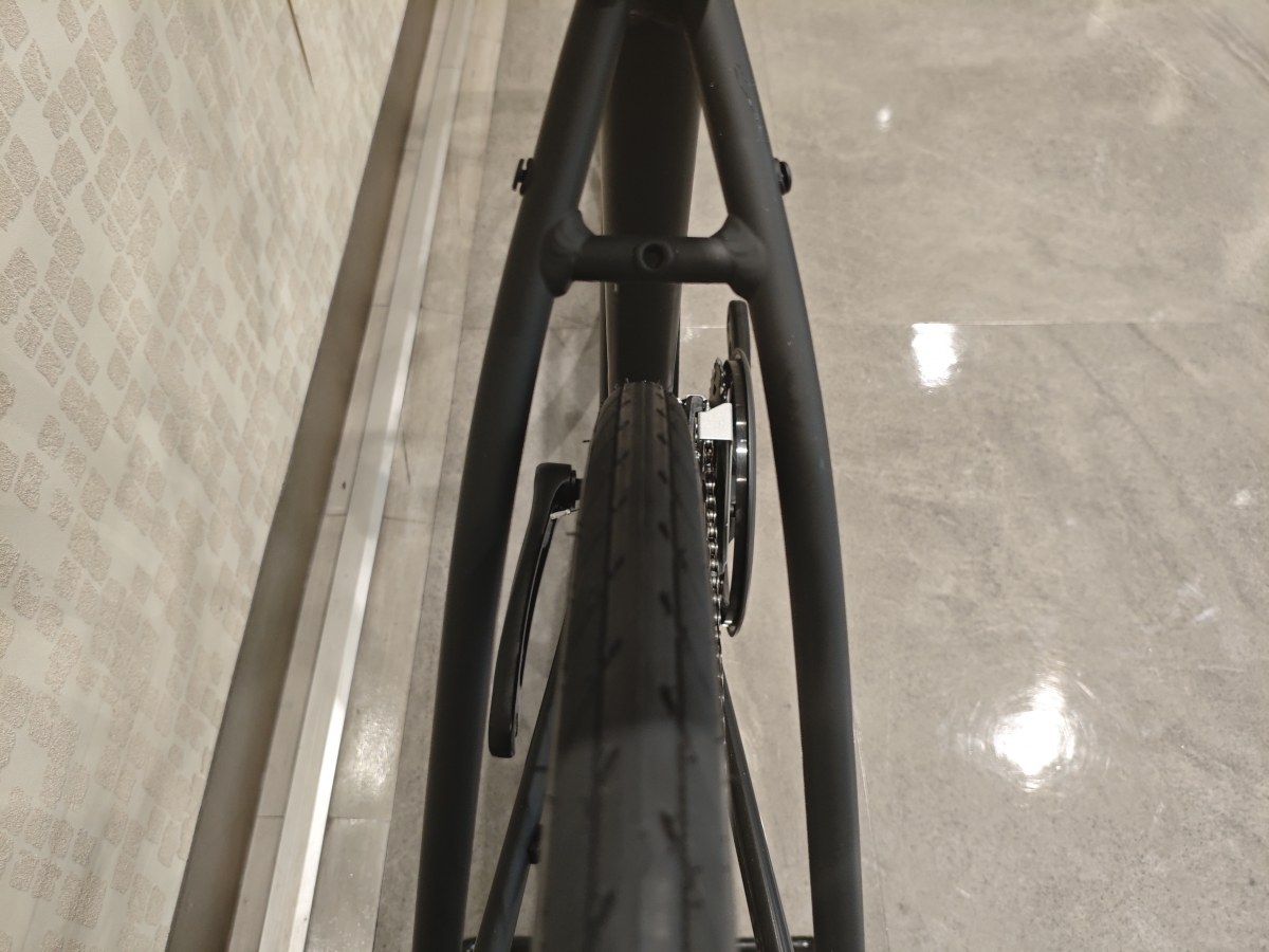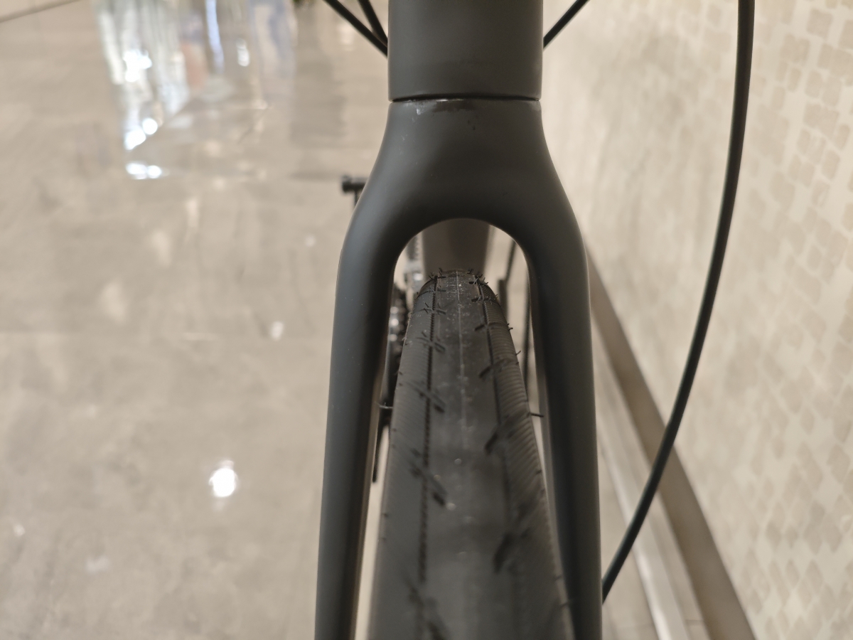 タイヤクリアランスはこのくらい。2025年モデルはデフォルトのタイヤサイズが700×30cでフォーク側で左右にあまり余裕がないので、最大でも32cが限界となりそうです。
