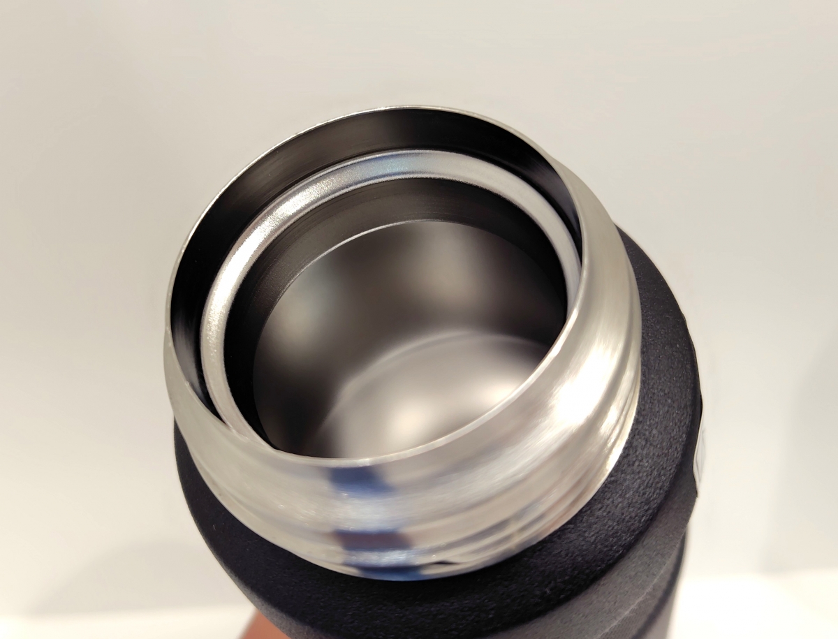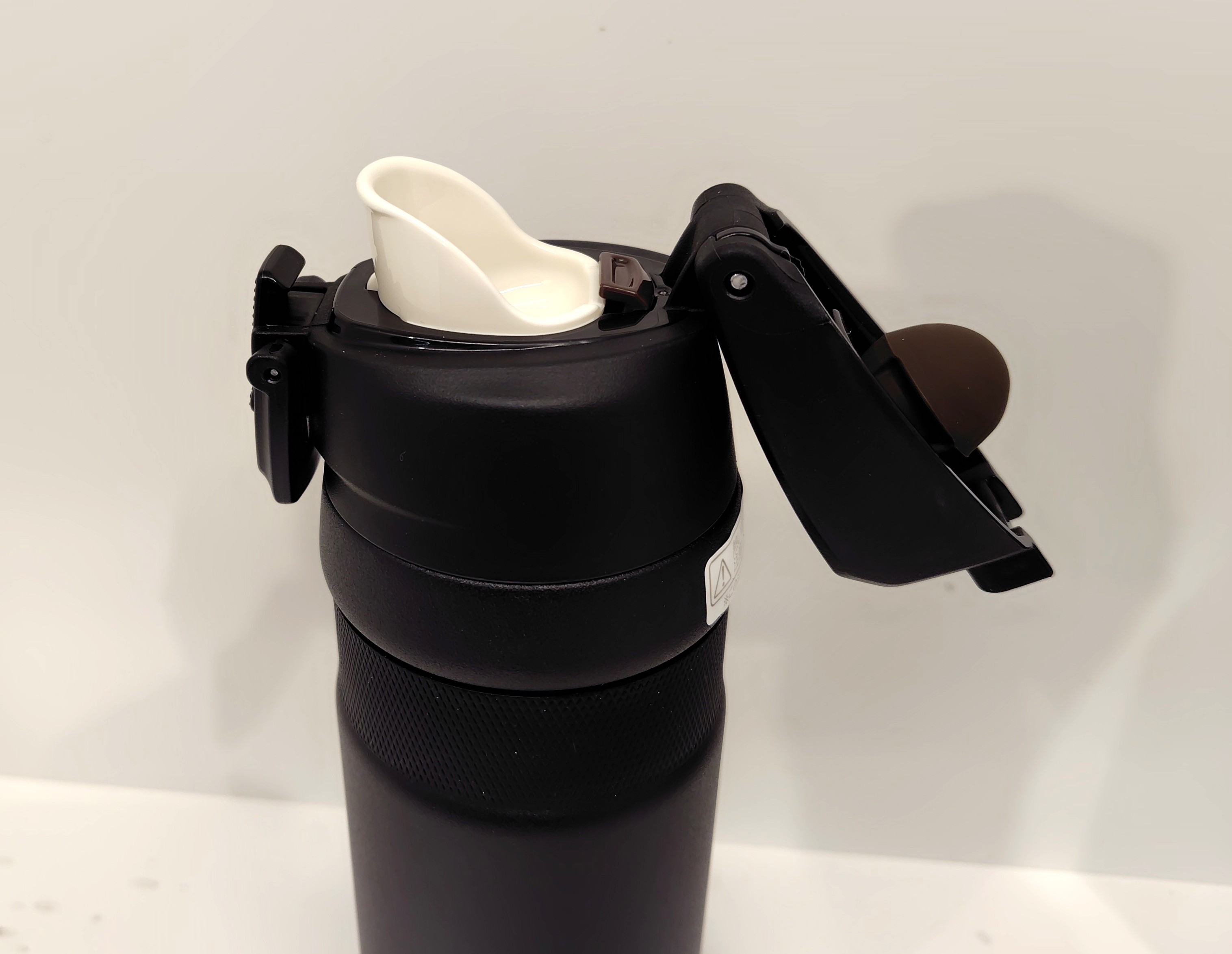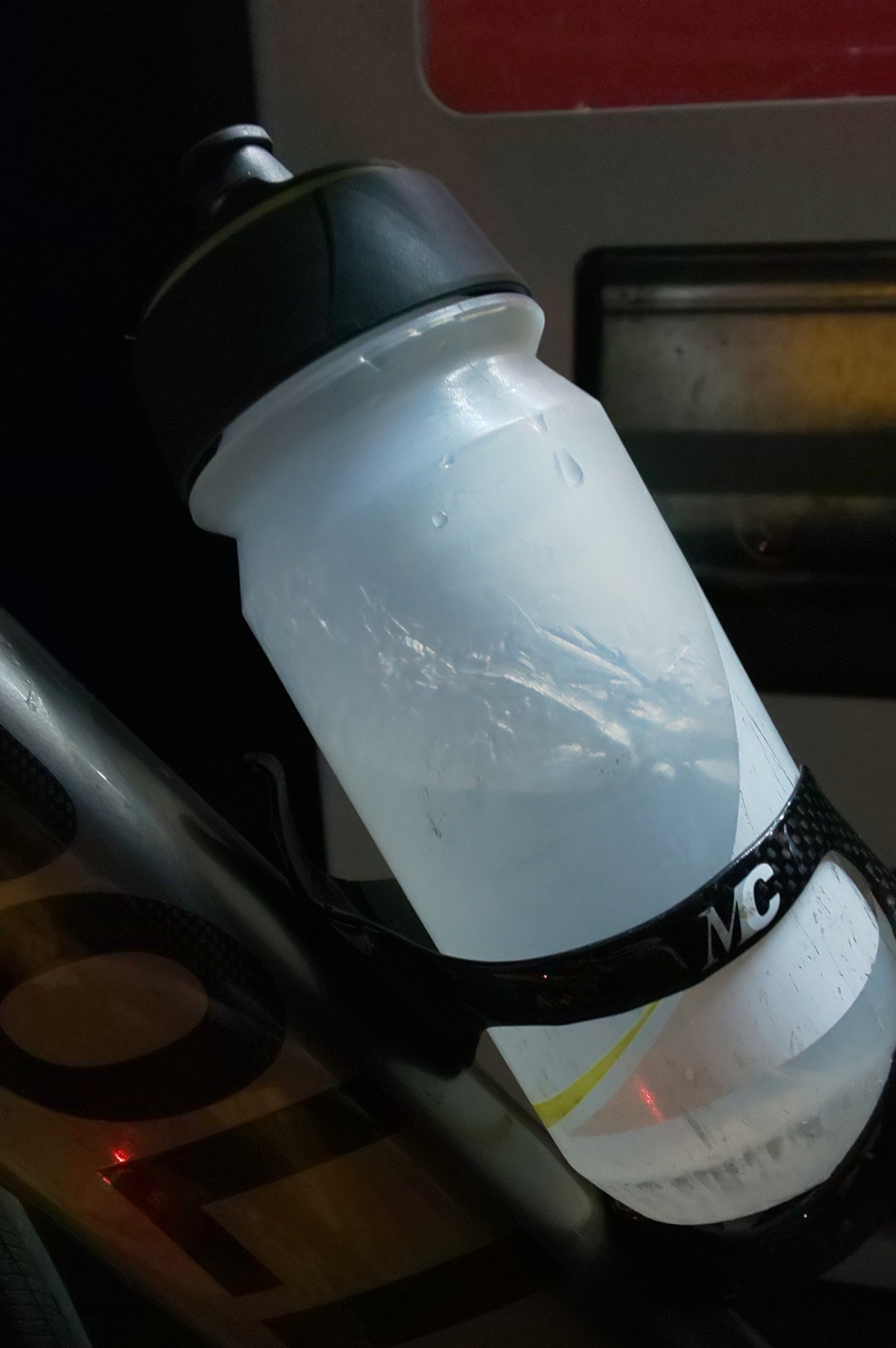 夏場は重宝する、氷を大量投入するのに便利な広い口金部分。氷が内部でカラコロ言いますがぬるい水分を摂取する事に比べたら些細な事です。寒い季節は山の方とか走っていると寒くて身体の芯が冷えそうになったりします。上りは良いんですけどね。普通のボトルだとよく冷えていて。下りや平坦区間で自販機が見当たらない時の保険として持っていても良いかと思います。寒い時のはあたたかい飲み物は白湯でも美味しく感じますからね。