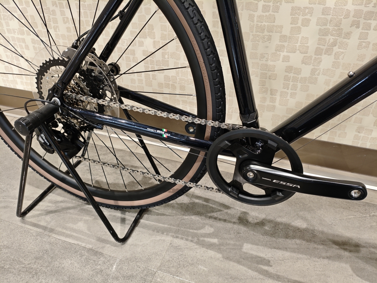 シマノ ESSA 1×8速を採用しています。細かい調整は苦手ですが、11-45Tのワイドなギアでフロントシングルながら平地〜登坂まで対応可能です。突然坂が現れがちな都心でも使いやすいですね。