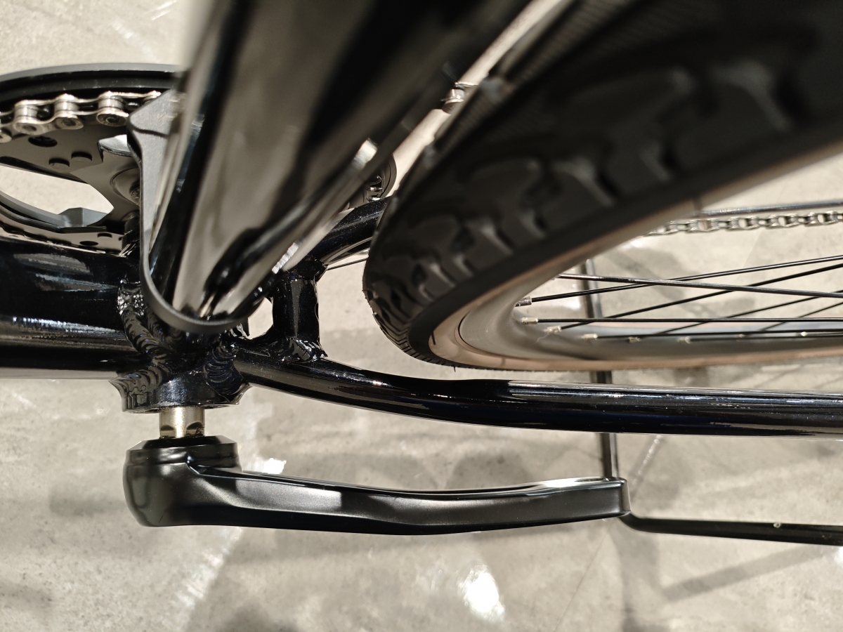 おそらくブラックをベースにグリッター配合のクリアネイビーを重ねているのだと思います。グリップやサドルなどの各部のパーツをダークブラウンなんかにするといい感じになりそうですね!カスタムもご相談くださいね。