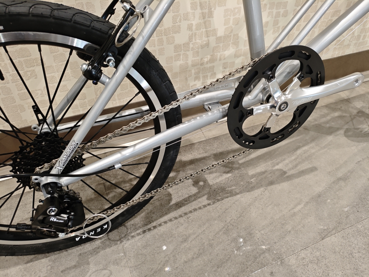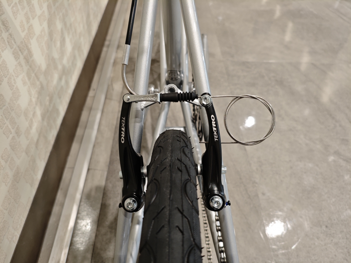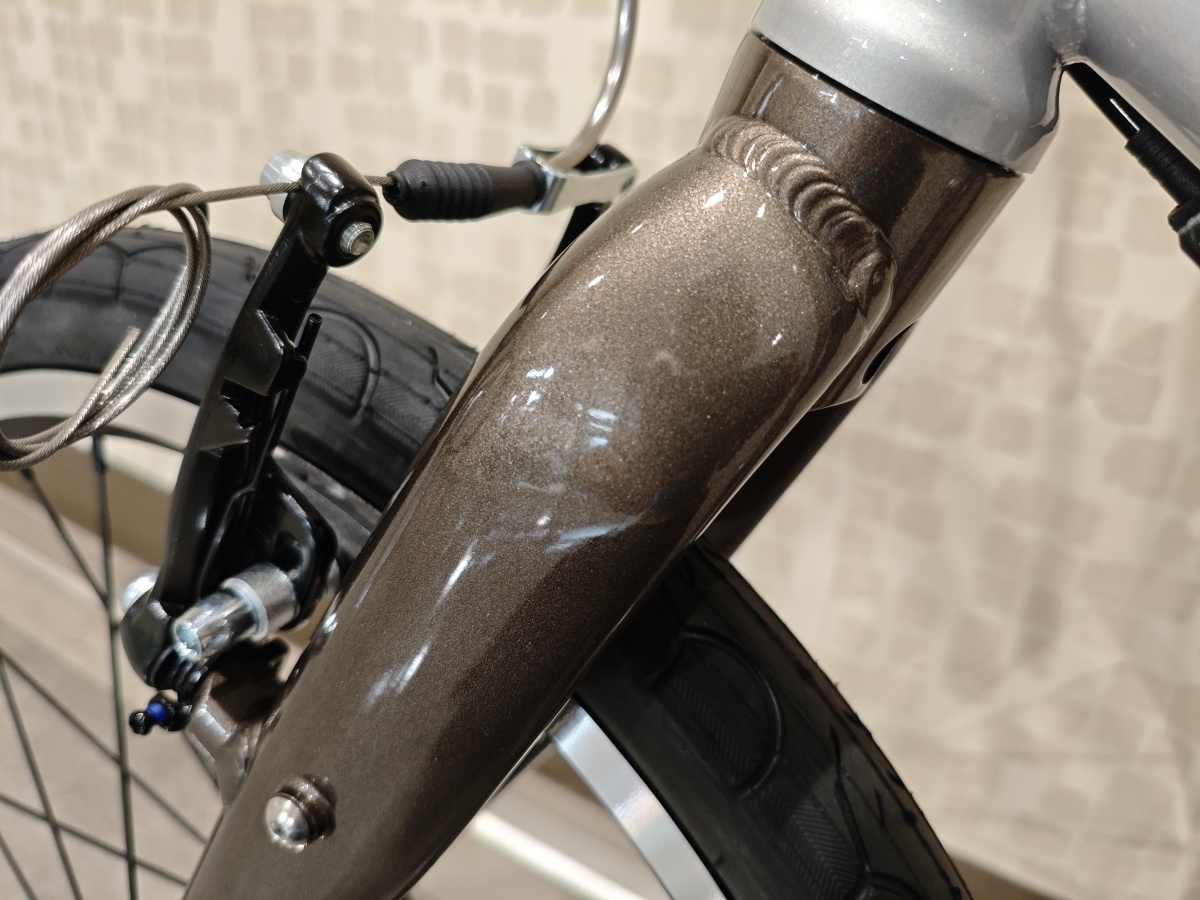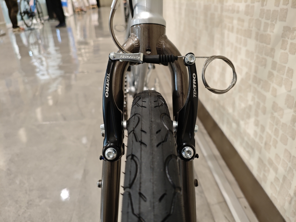 フォークのセンターの穴やシートステーのブリッジはキャリパーブレーキの取付が可能な形状なので451化も対応できるようです。
