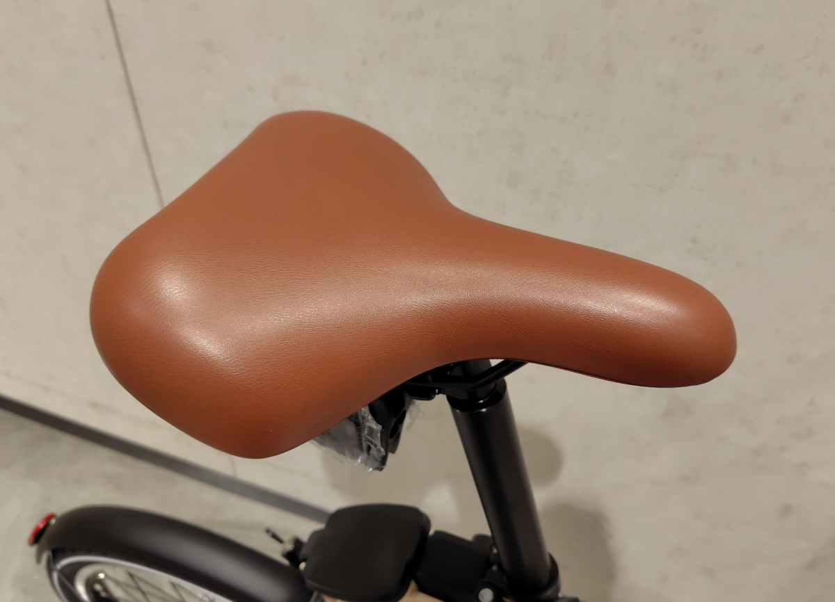 普通のサドルにはない後部のグリップ。ハンドルとサドル側のグリップを使えばバランスよく車体を持ち上げられますね。またオプションにある両立スタンド(税込4,400円)を取り付けた時に後ろに引くのにも便利です。