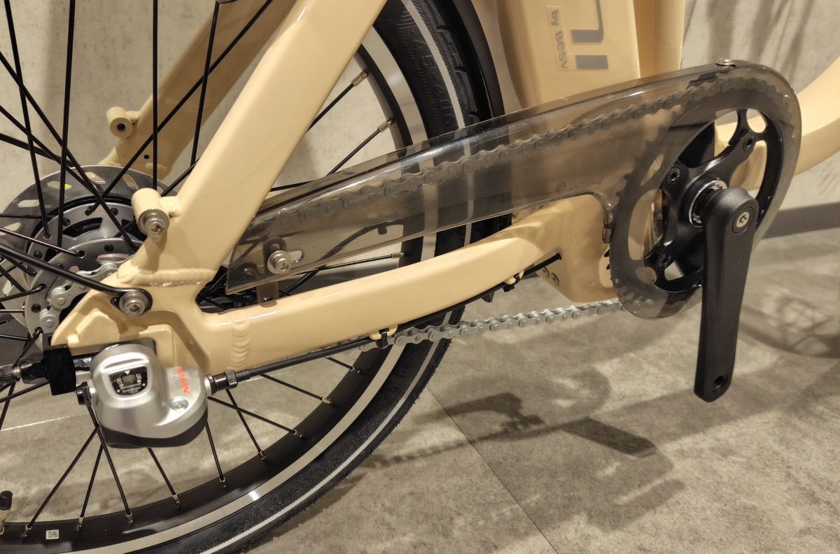チェーンケースがあるので裾の巻き込みや汚れの心配がありません!ギヤは内装の3段変速です。タイヤサイズは20×1.75(406)、バルブは英式が採用されています。