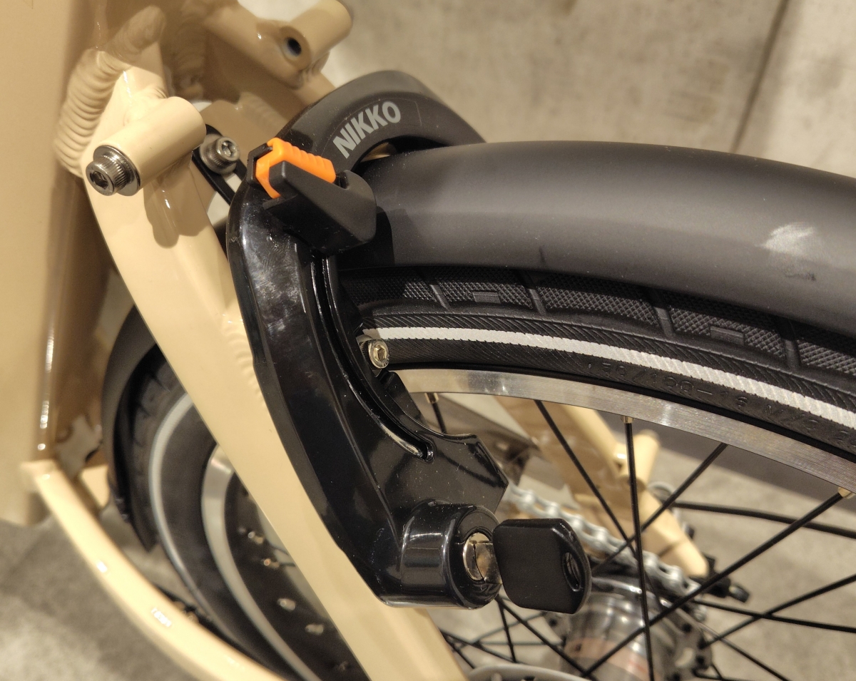 後輪側にサークル錠があります。サークル錠のカギはバッテリーを取り出す時のカギでもあります。