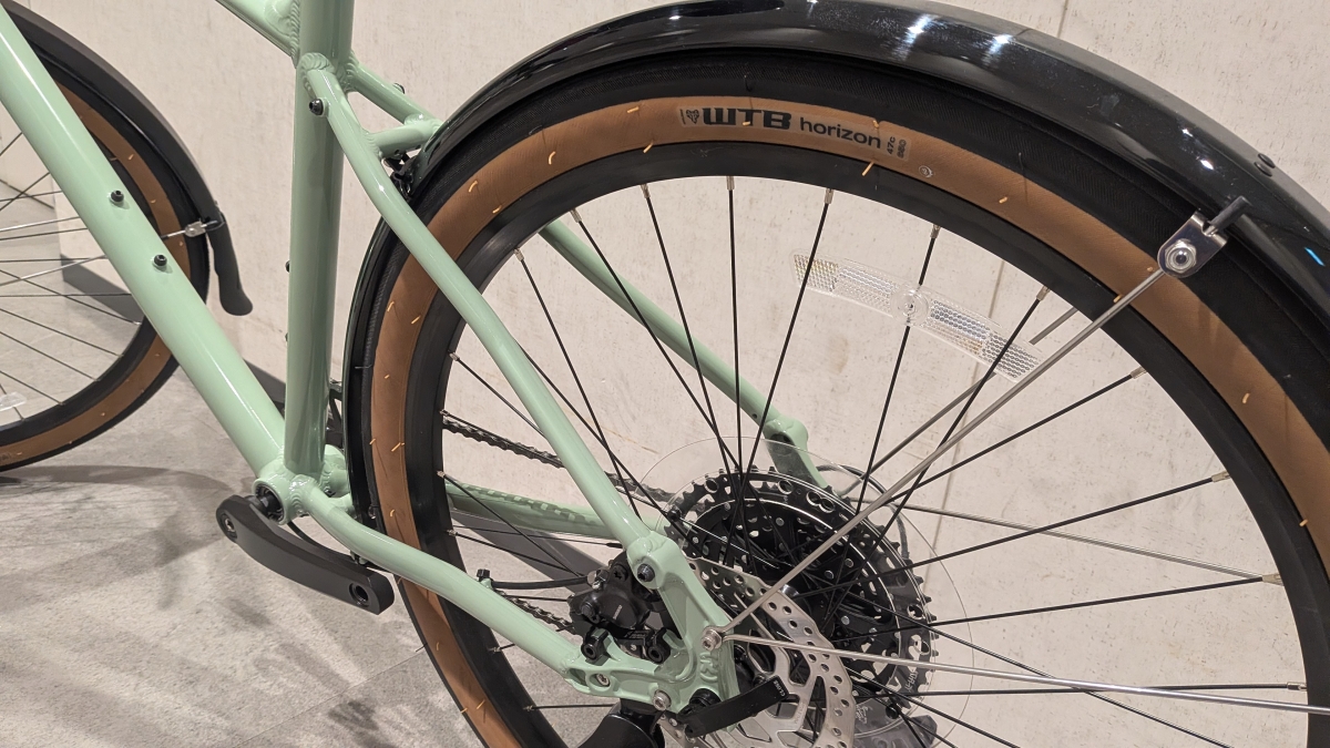 ブレーキは安定のSHIMANO油圧ディスクブレーキ。最初のうちの慣れは必要ですが、制動力の高さとタッチの軽さは魅力的。雨の日でも制動力が落ちにくいのでフェンダーと同様、毎日使う方にも嬉しいポイントです。