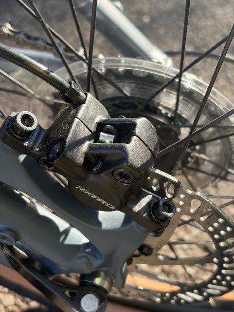 そして何より目を引いたのがミニベロでは珍しく油圧ディスクブレーキが採用されています!ミニベロの場合、そこまでストッピングパワーを必要としないのでワイヤー式のディスクブレーキが多い中これは嬉しいパーツ構成です。雨の日でも握力の弱めな女性でも安心の制動力を得られます。