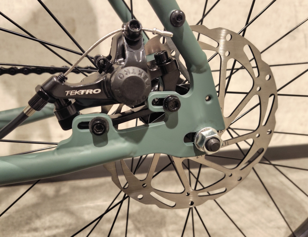 ブレーキはテクトロのワイヤーで引くタイプのメカニカルディスクブレーキが採用されています。効きを強くしたいなら油圧ディスクブレーキに換装するのも良いですよ!オンラインでお買い得なセットも極少ですがございます!別途工賃などは掛かりますが、是非ご検討ください!