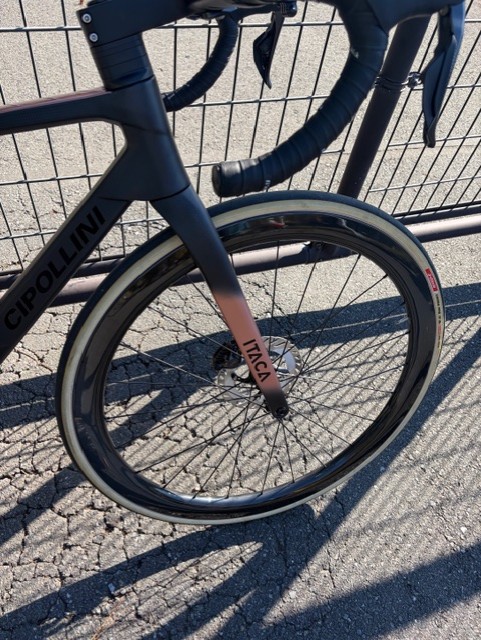 ホイールの純粋なインプレの為に当日は自分のバイクで行ったんですが、タイミングと人気の高さで実現できず(涙)ワイズロード独占輸入ブランドでお馴染みのチポッリーニのエンデュランスロードとのコンビで試乗させて頂きました!