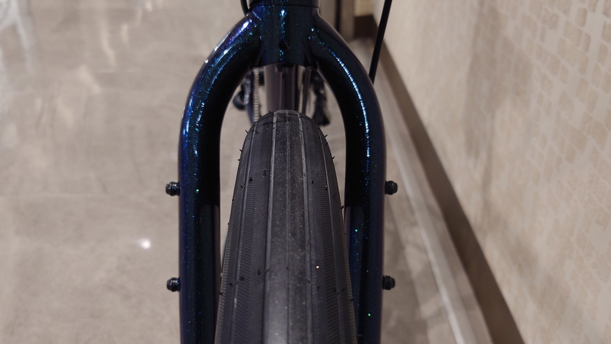 メーカー曰く「タイヤクリアランスを拡張した」という事なので、より太めのタイヤにも対応が可能