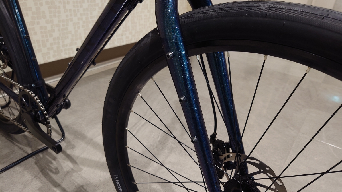フレームの設計値(ジオメトリ)は2025年モデルと変更はありませんが、トップチューブ上やフォークサイドにダボ(ネジ穴)が追加されています
