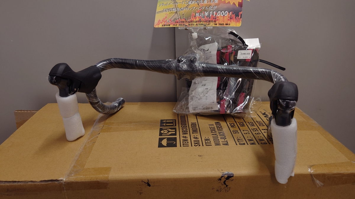 SHIMANO CLARISのコンポーネントを搭載したフラットバーロードを、ドロップハンドル化するキットです